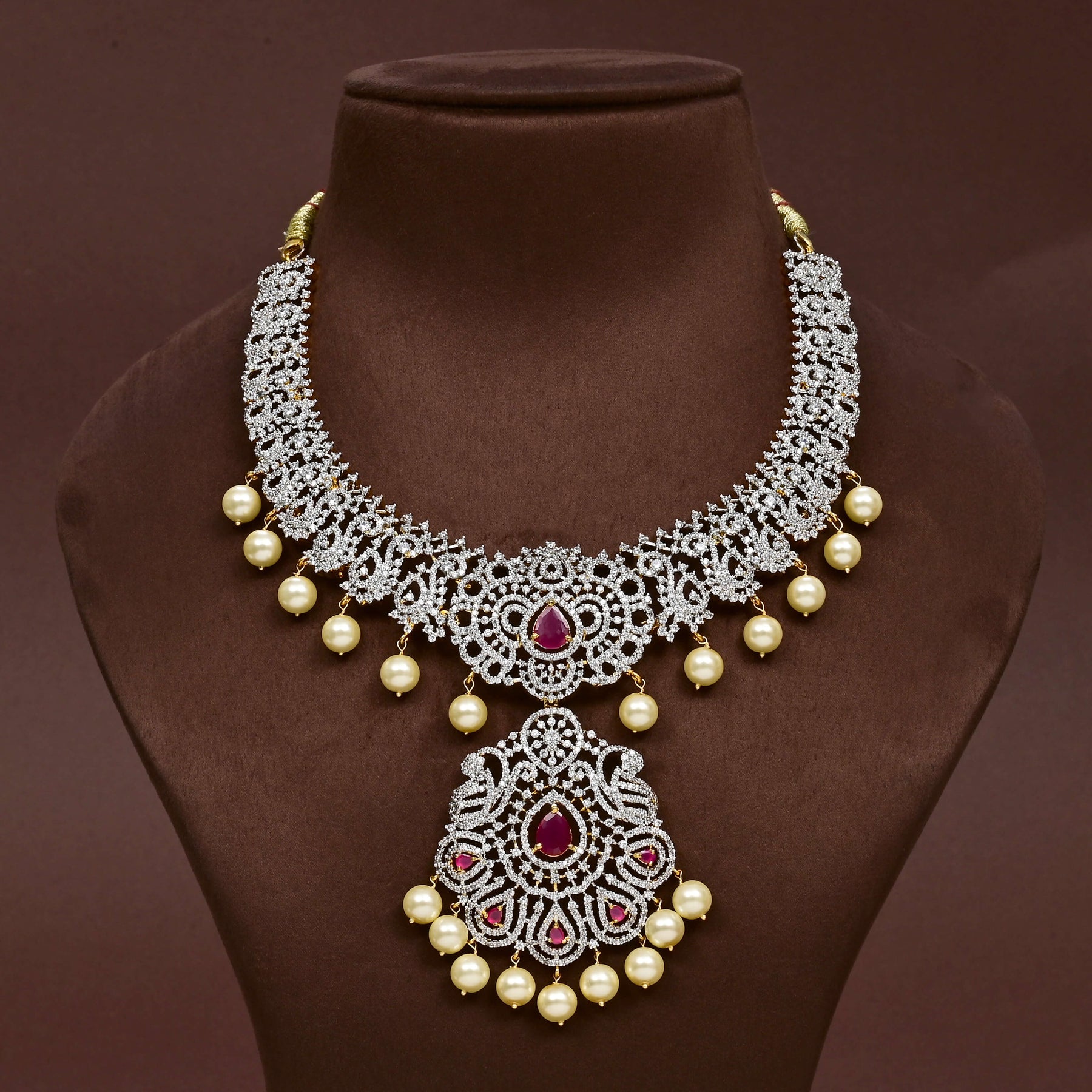 Elevate your jewelry collection with this exquisite CZ Necklace Set, meticulously handcrafted to deliver timeless elegance. Featuring authentic cubic zirconia stones in a brilliant diamond finish paired with semi-precious ruby accents, this set showcases sophisticated design that commands attention. Each piece is individually crafted, ensuring a truly one-of-a-kind aesthetic that sets you apart. The refined composition balances sparkle with understated luxury, making it an ideal choice for both special occasions and elevated everyday wear. Experience the artistry of fine jewelry craftsmanship with a necklace set that reflects your discerning taste.