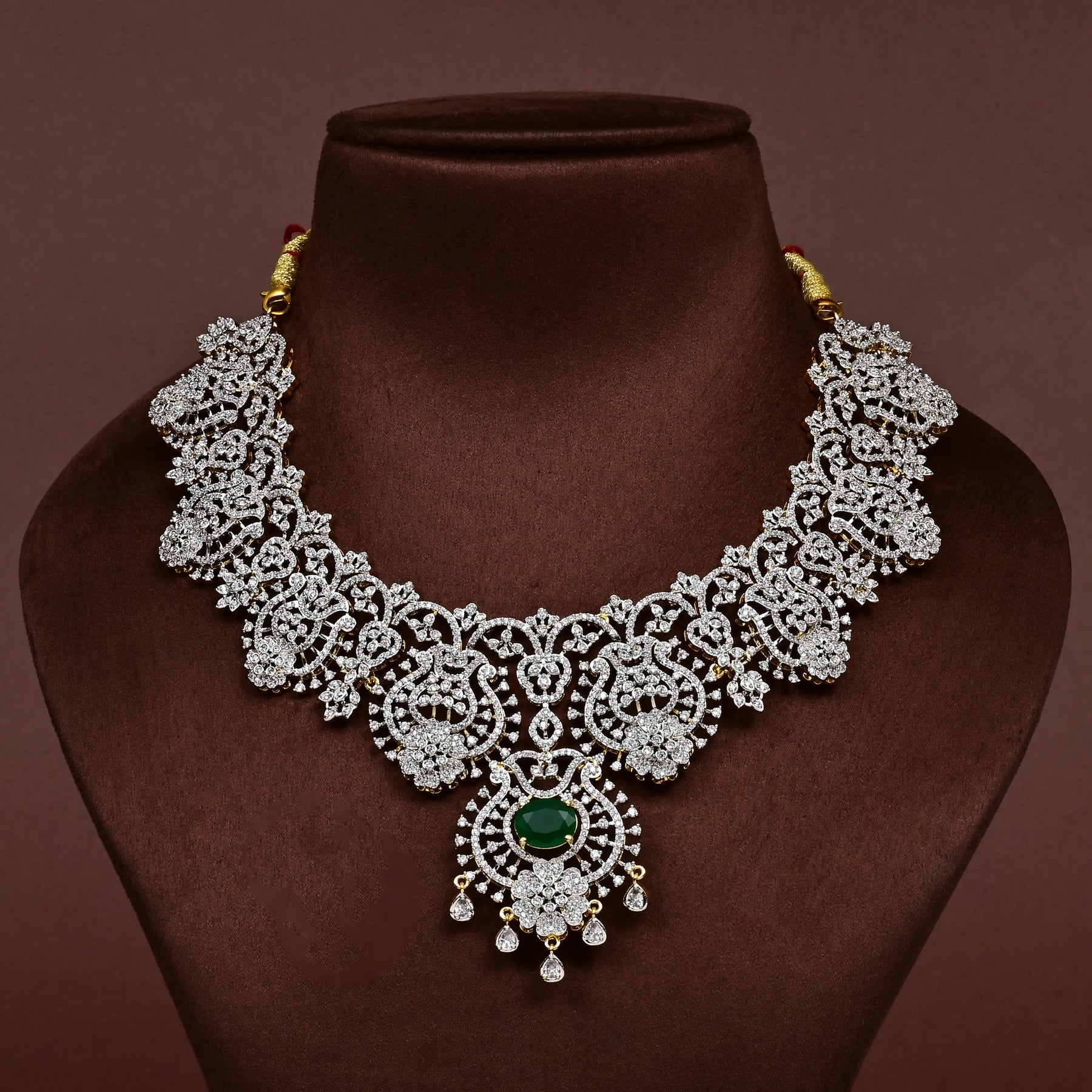 Elevate your jewellery collection with this exquisite CZ Necklace Set, meticulously handcrafted to showcase timeless elegance. Featuring authentic cubic zirconia stones in a brilliant diamond finish paired with genuine semi-precious emeralds, this set delivers sophisticated sparkle and rich colour. Each piece is individually designed, ensuring you own a truly distinctive creation. The expert craftsmanship and refined aesthetic make it an ideal choice for special occasions or everyday luxury. A statement piece that combines classic beauty with contemporary artistry.