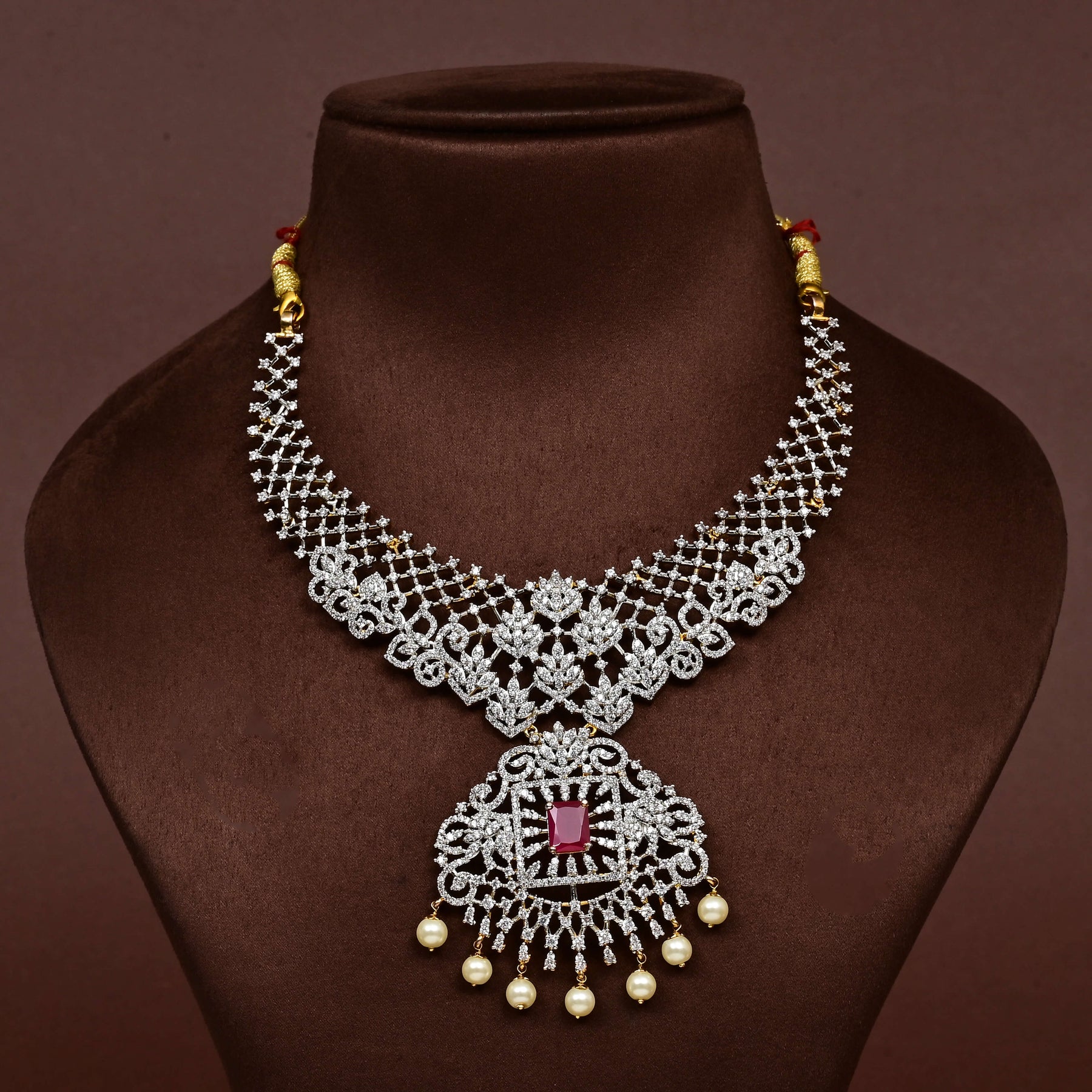 Elevate your jewelry collection with this exquisite CZ Necklace Set, meticulously handcrafted to deliver timeless elegance. Featuring authentic cubic zirconia stones in a brilliant diamond finish paired with semi-precious ruby accents, this set showcases sophisticated design that commands attention. Each piece is individually crafted, ensuring a truly one-of-a-kind aesthetic that sets you apart. The refined composition balances luxury with accessibility, making it an ideal choice for those who appreciate fine jewelry without compromise. Perfect for special occasions or everyday sophistication.