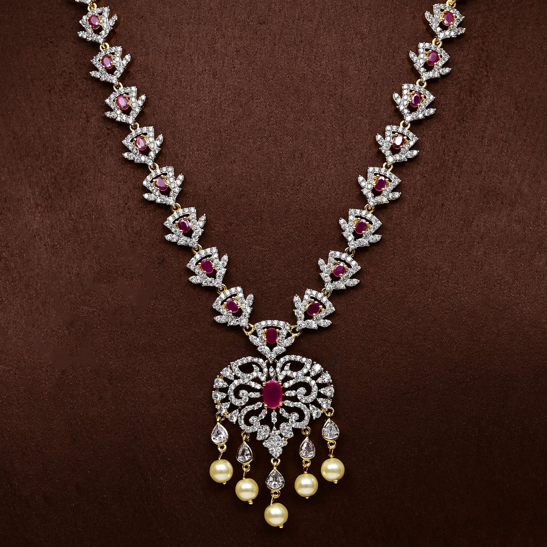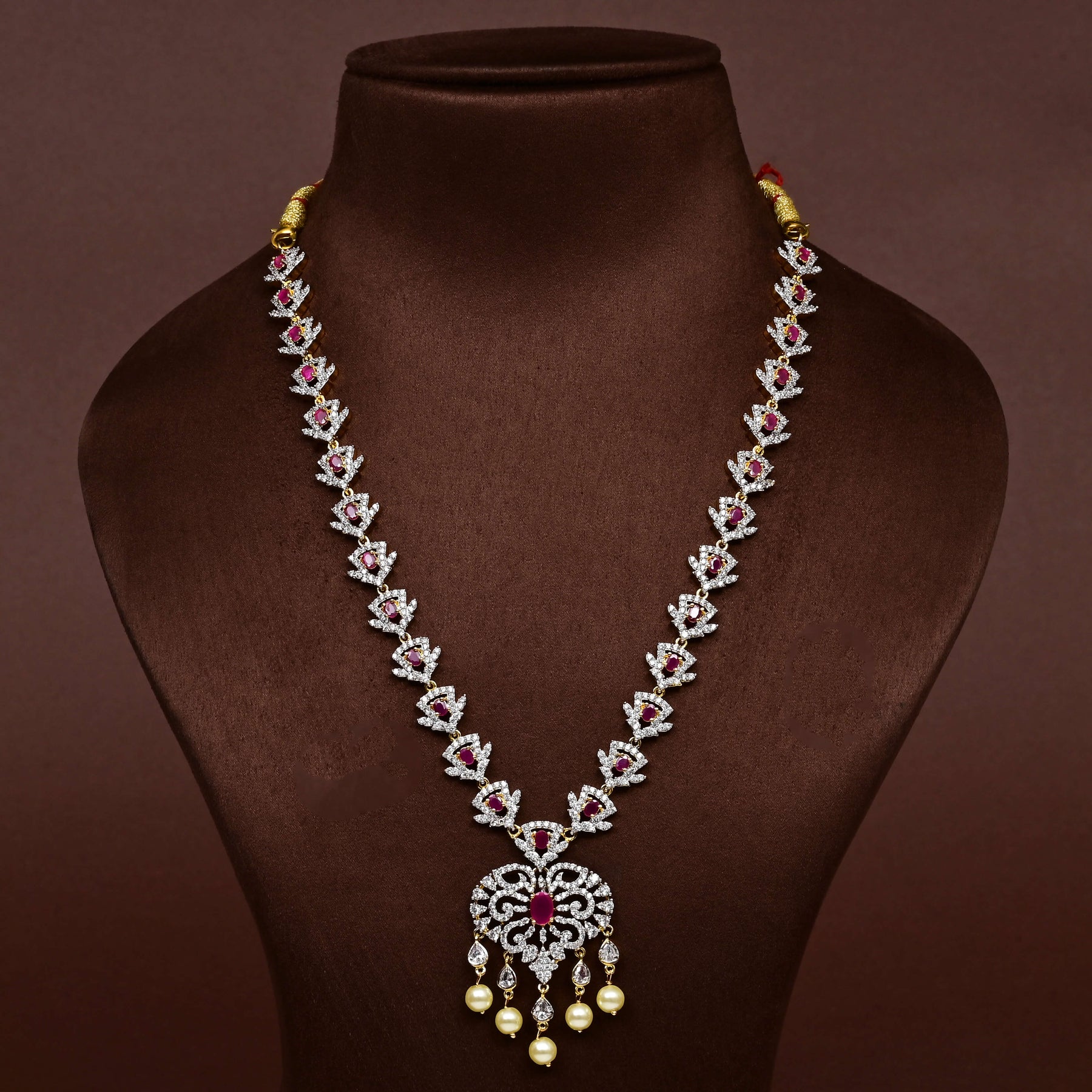 Elevate your collection with this exquisite CZ Necklace Set, meticulously handcrafted to deliver timeless elegance. Featuring authentic cubic zirconia stones in a brilliant diamond finish paired with semi-precious ruby accents, this piece combines sophistication with distinctive artistry. Each necklace showcases a one-of-a-kind design that reflects superior craftsmanship and refined taste. Perfect for special occasions or everyday luxury, this set offers the radiance of fine jewelry with an accessible price point. A true statement piece for those who appreciate quality and individuality.