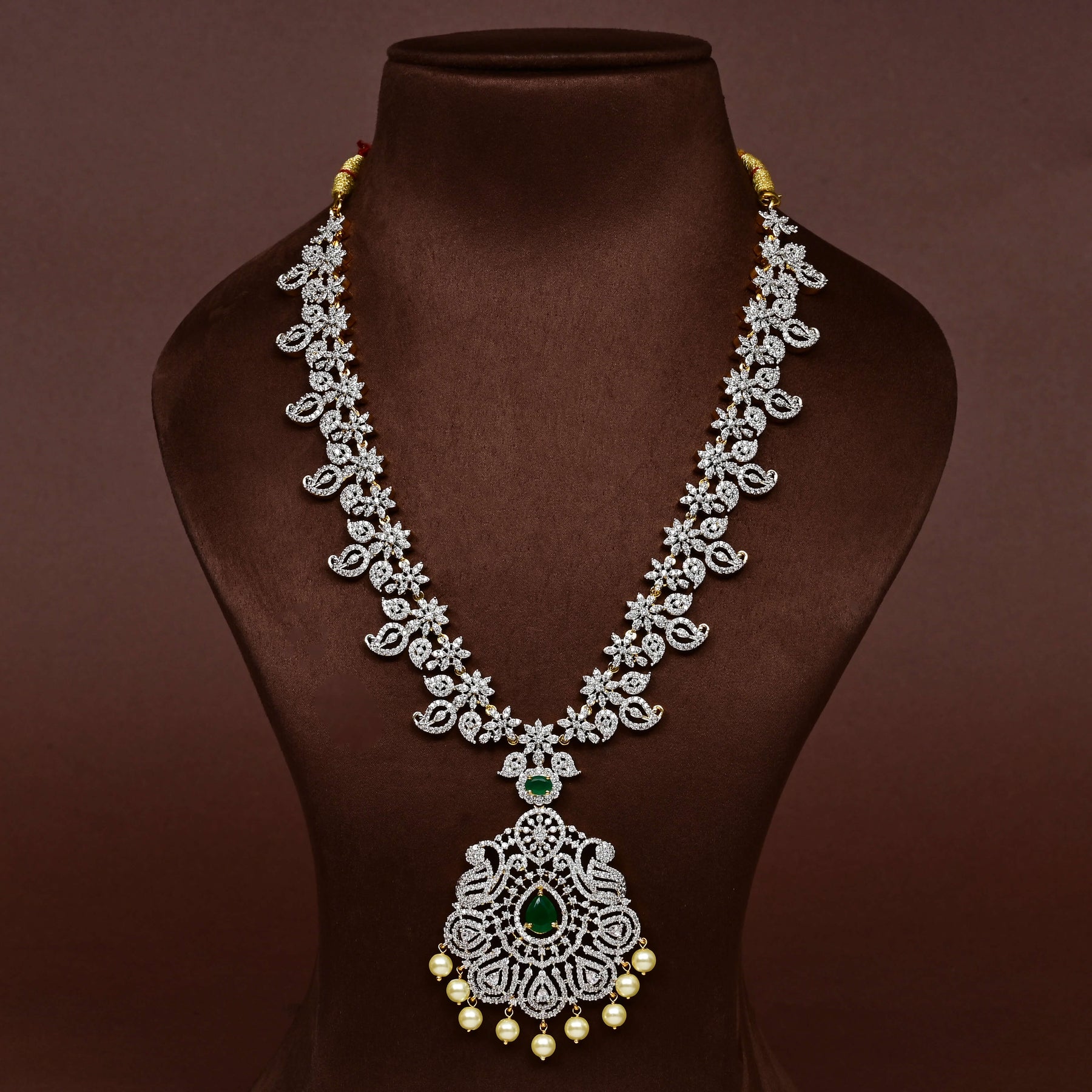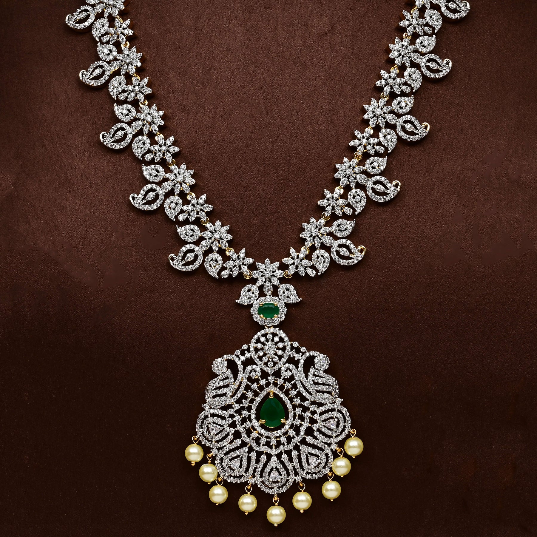 Elevate your jewellery collection with this exquisite CZ Necklace Set, meticulously handcrafted to showcase timeless elegance. Featuring authentic cubic zirconia stones in a brilliant diamond finish paired with genuine semi-precious emeralds, this set delivers sophisticated sparkle and rich colour. Each piece is individually designed and crafted, ensuring you own a truly one-of-a-kind creation. The refined aesthetic makes it perfect for both special occasions and refined everyday wear, offering the luxury look of fine jewellery with distinctive artisanal character.