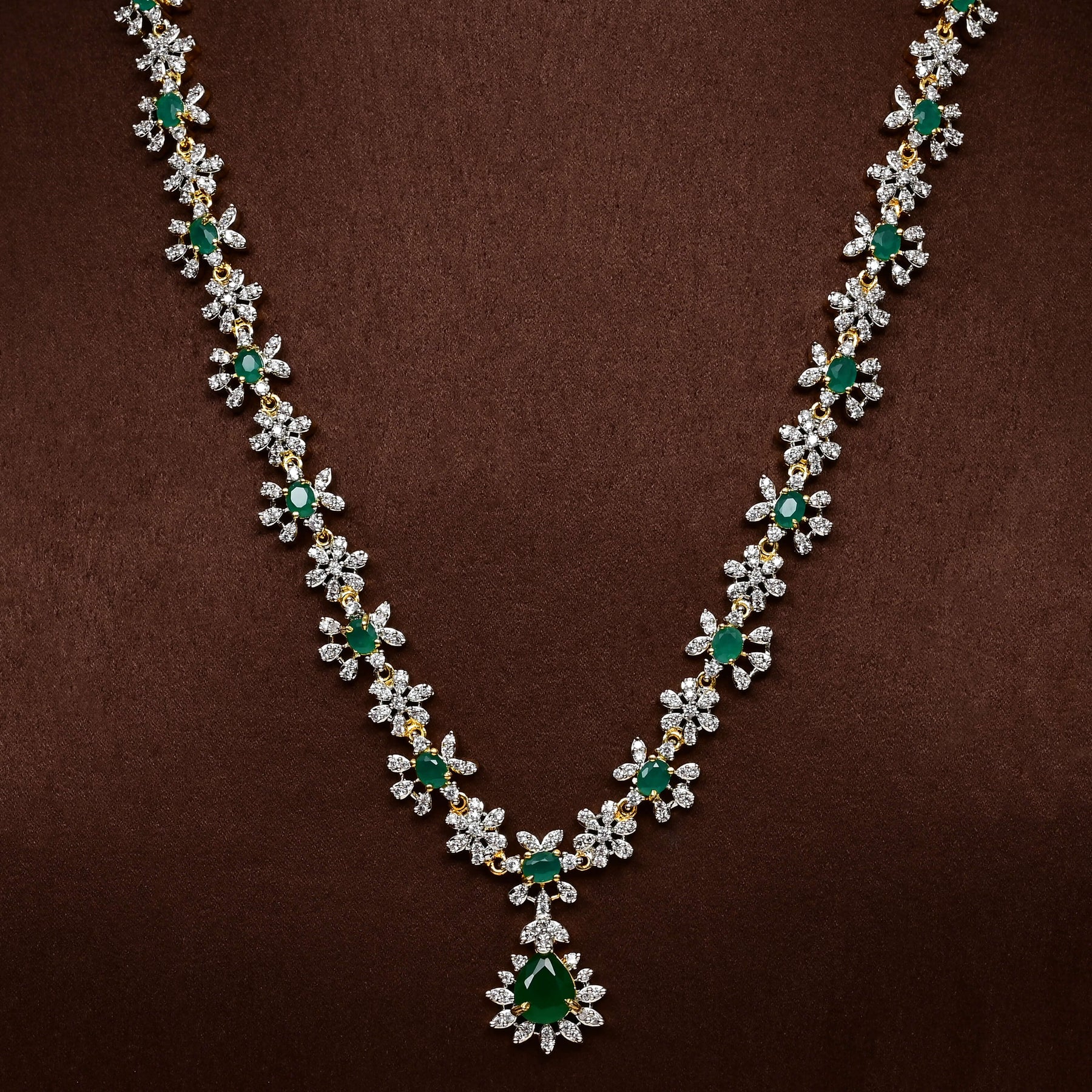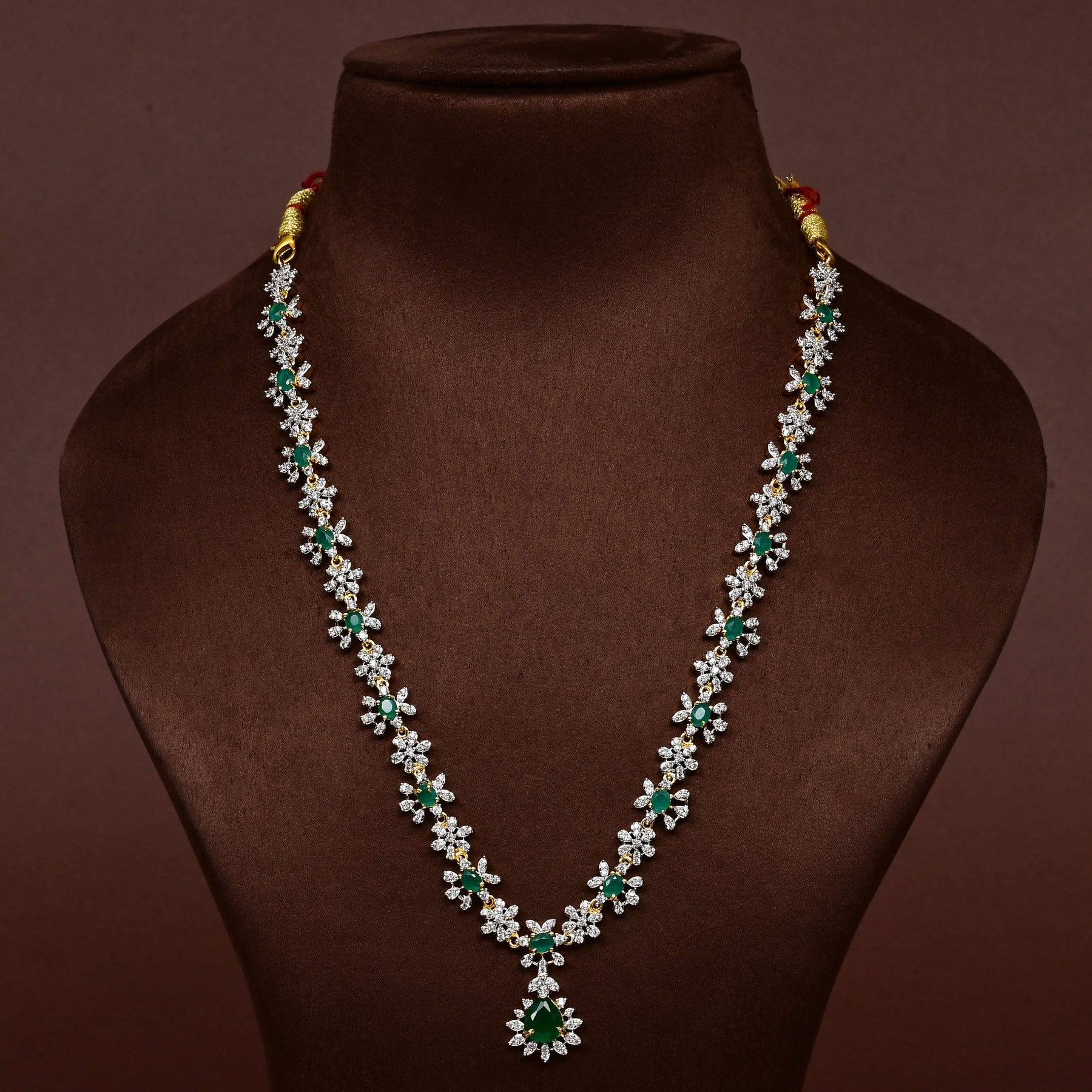 Elevate your jewellery collection with this exquisite CZ Necklace Set, meticulously handcrafted to showcase timeless elegance. Featuring brilliant diamond-finish cubic zirconia stones paired with genuine semi-precious emeralds, this set delivers sophisticated sparkle with authentic gemstone allure. Each piece is individually designed and crafted, ensuring you own a truly one-of-a-kind creation. The refined aesthetic makes it perfect for special occasions or elevated everyday wear, combining expert craftsmanship with luxurious appeal.