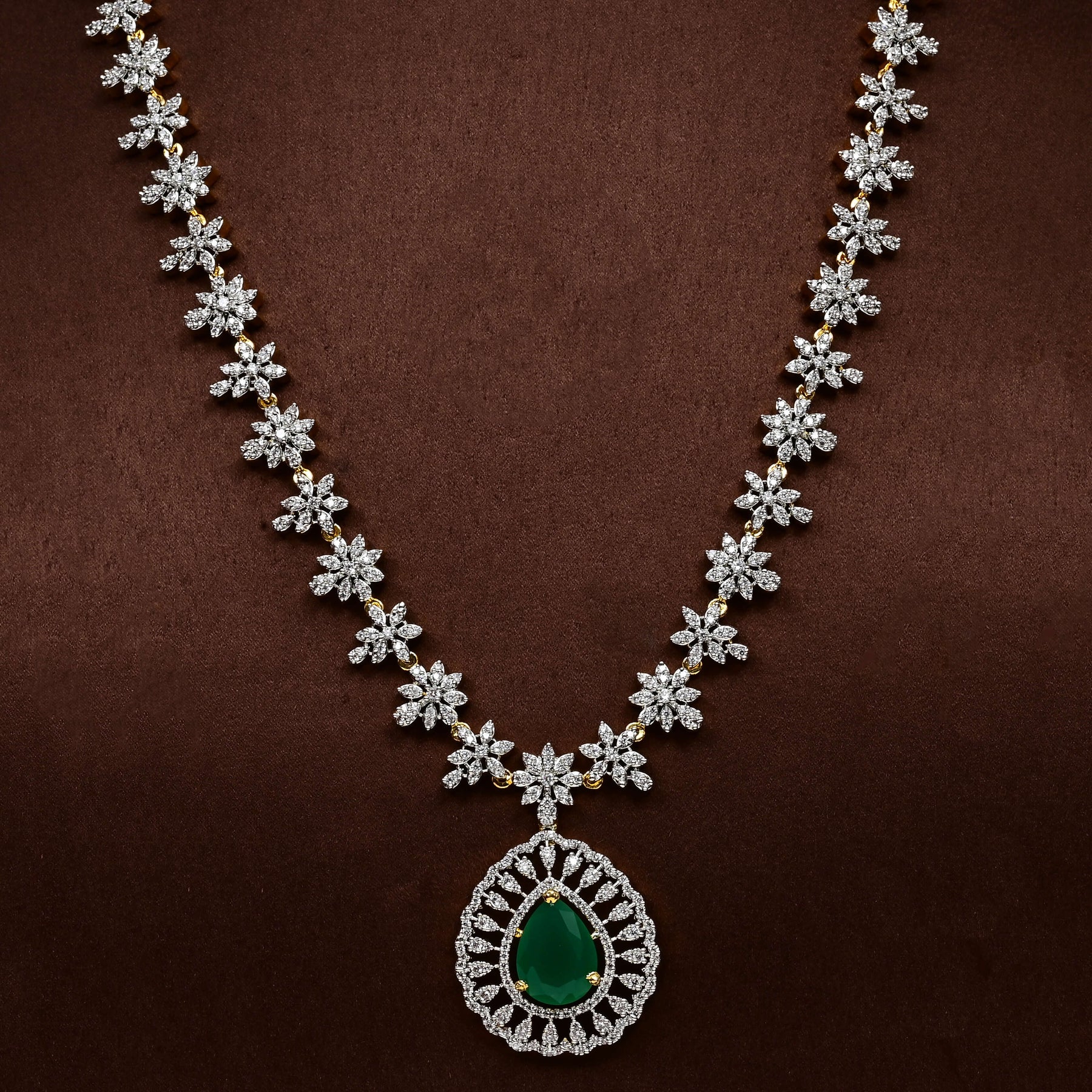 Discover refined elegance with this handcrafted CZ Necklace Set, designed for the discerning jewelry enthusiast. Showcasing genuine cubic zirconia stones with a radiant diamond finish complemented by semi-precious emerald gemstones, this collection exemplifies sophisticated artistry. Each piece is individually created with meticulous attention to detail, ensuring a truly unique design that stands apart. The harmonious blend of brilliant sparkle and rich emerald tones creates a versatile accessory suitable for both formal occasions and elevated everyday styling.
