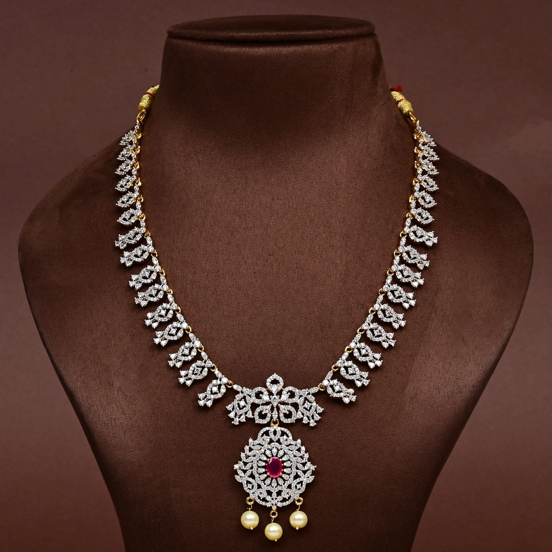 Elevate your jewellery collection with this exquisite CZ Necklace Set, meticulously handcrafted to deliver timeless elegance. Featuring authentic cubic zirconia stones in a brilliant diamond finish paired with semi-precious ruby accents, this piece combines sophistication with distinctive artistry. Each necklace showcases a one-of-a-kind design that reflects superior craftsmanship and refined taste. Perfect for special occasions or everyday luxury, this versatile set brings a classy, polished aesthetic to any ensemble. An investment in quality jewellery that transcends trends.