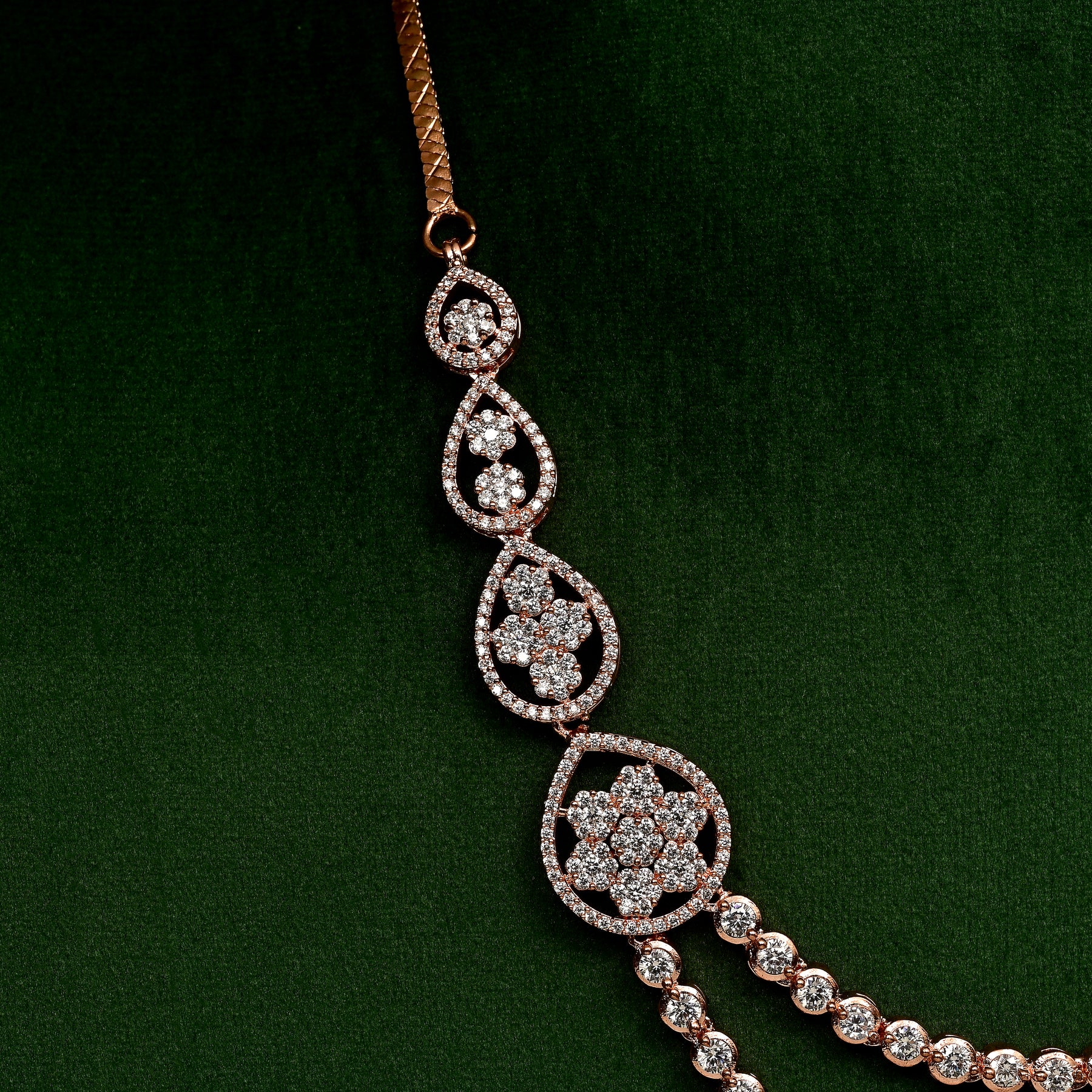 This exquisite CZ Necklace Set features genuine cubic zirconia stones meticulously hand-crafted to achieve a diamond-like brilliance. Set in an elegant rose gold finish, this exclusive design represents exceptional artisanship. The unique composition and premium craftsmanship ensure this set remains a distinctive addition to any fine jewelry collection.