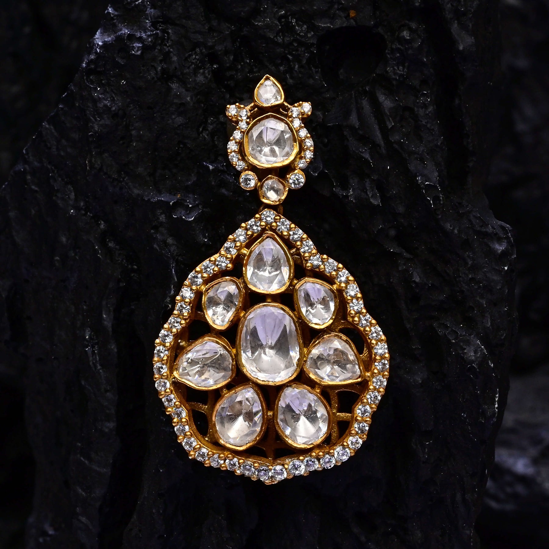 Elevate your collection with this exquisite handcrafted moissanite pendant, featuring authentic CZ and semi-precious moissanite stones set in a distinctive vintage-inspired design. Each piece is meticulously crafted to be truly one-of-a-kind, combining timeless aesthetics with contemporary artistry. The brilliant sparkle of moissanite rivals traditional gemstones while offering exceptional durability and value. Perfect for those seeking a statement piece that reflects individuality and refined taste, this pendant seamlessly transitions from everyday elegance to special occasion wear.