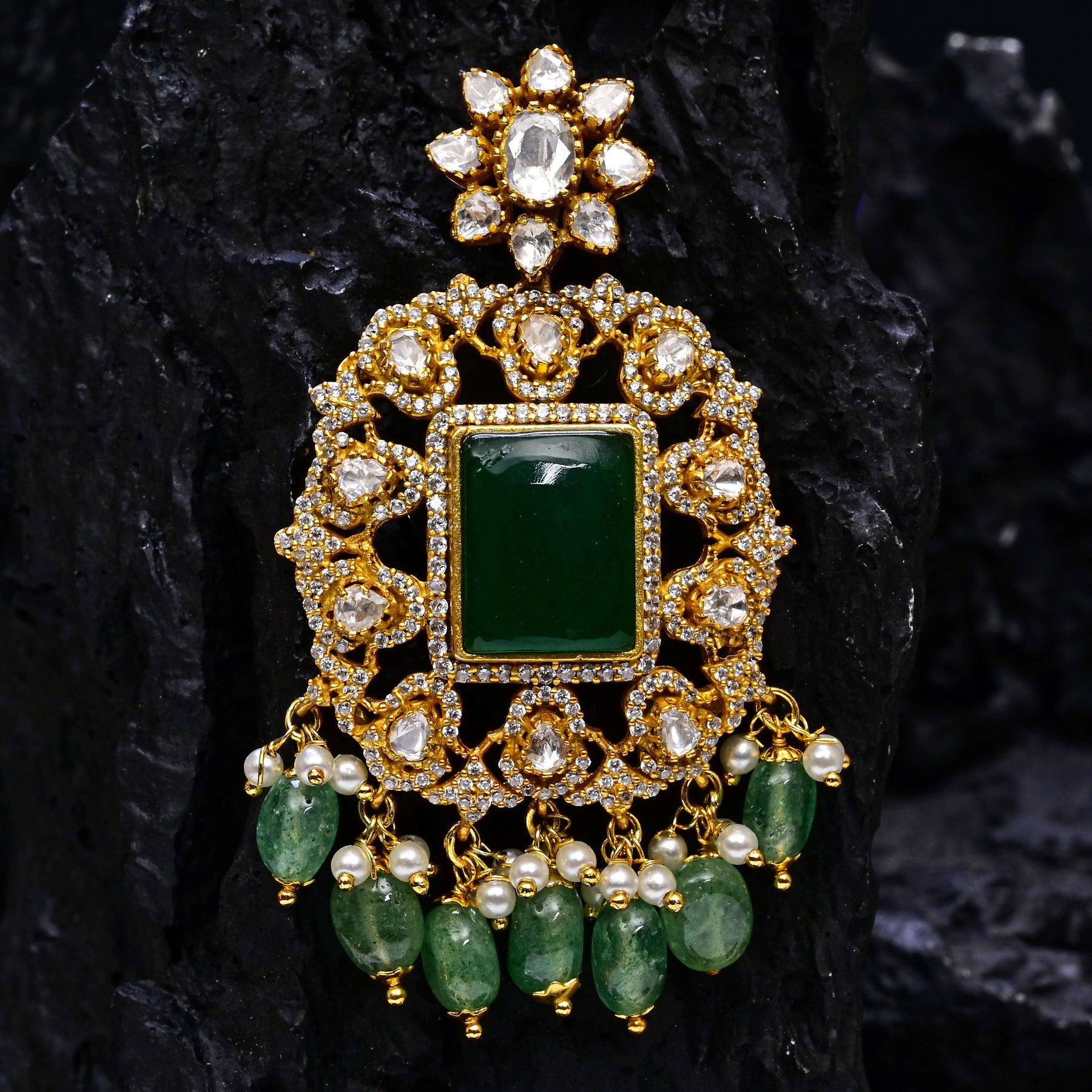 Elevate your collection with this exquisite handcrafted moissanite pendant, featuring authentic CZ and semi-precious moissanite stones set in a distinctive vintage-inspired design. Each piece is meticulously crafted to be truly one-of-a-kind, combining timeless aesthetics with contemporary artistry. The brilliant sparkle of moissanite rivals traditional gemstones while offering exceptional durability and value. Perfect for those seeking a statement piece that reflects individuality and refined taste, this pendant seamlessly transitions from everyday elegance to special occasion wear.