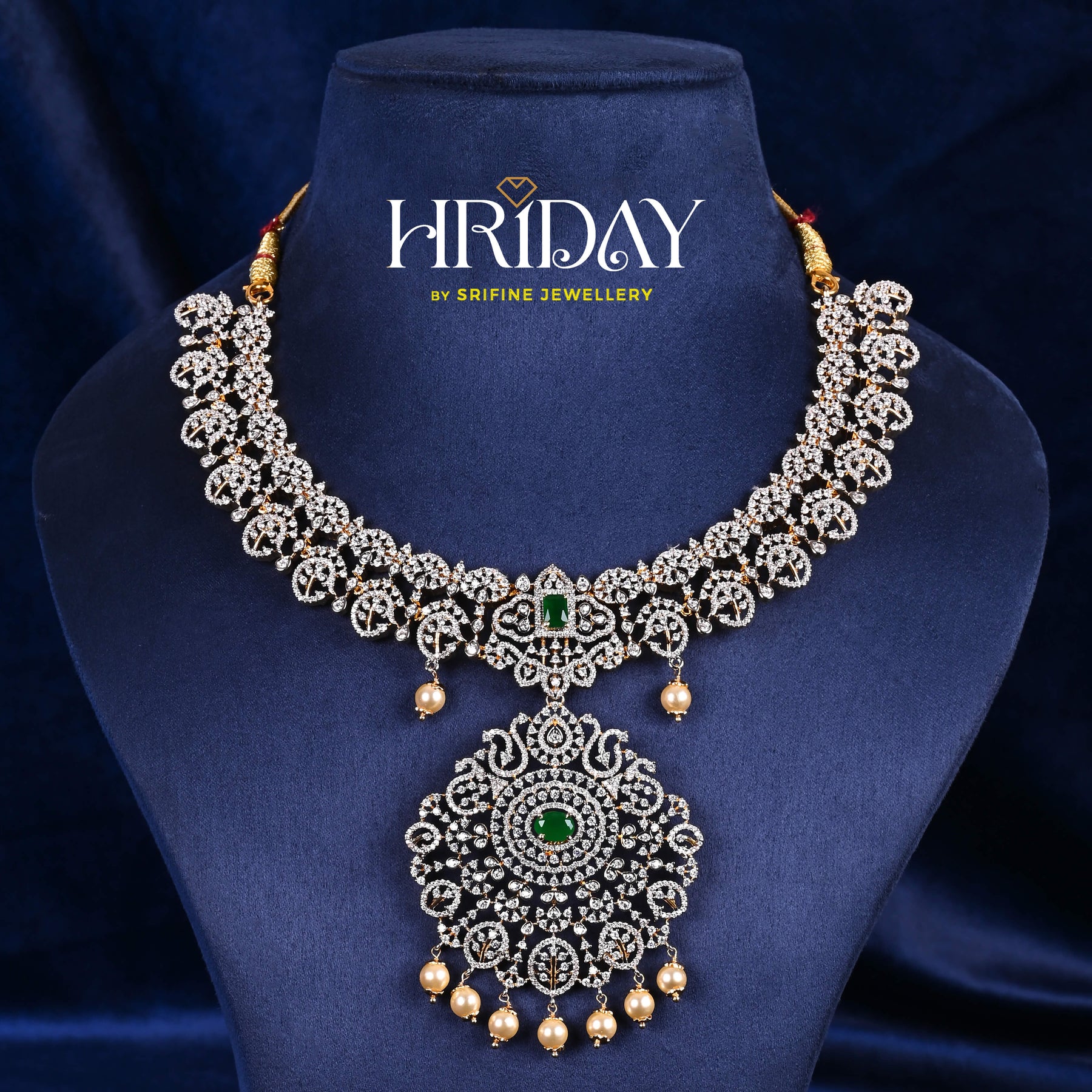 This exquisite 92.5 sterling silver necklace features genuine semi-precious emerald stones complemented by high-quality cubic zirconia accents. Each piece is meticulously handcrafted to achieve a diamond-like brilliance. The sophisticated design showcases expert silversmithing techniques, creating a luxurious statement piece that combines traditional craftsmanship with contemporary elegance.