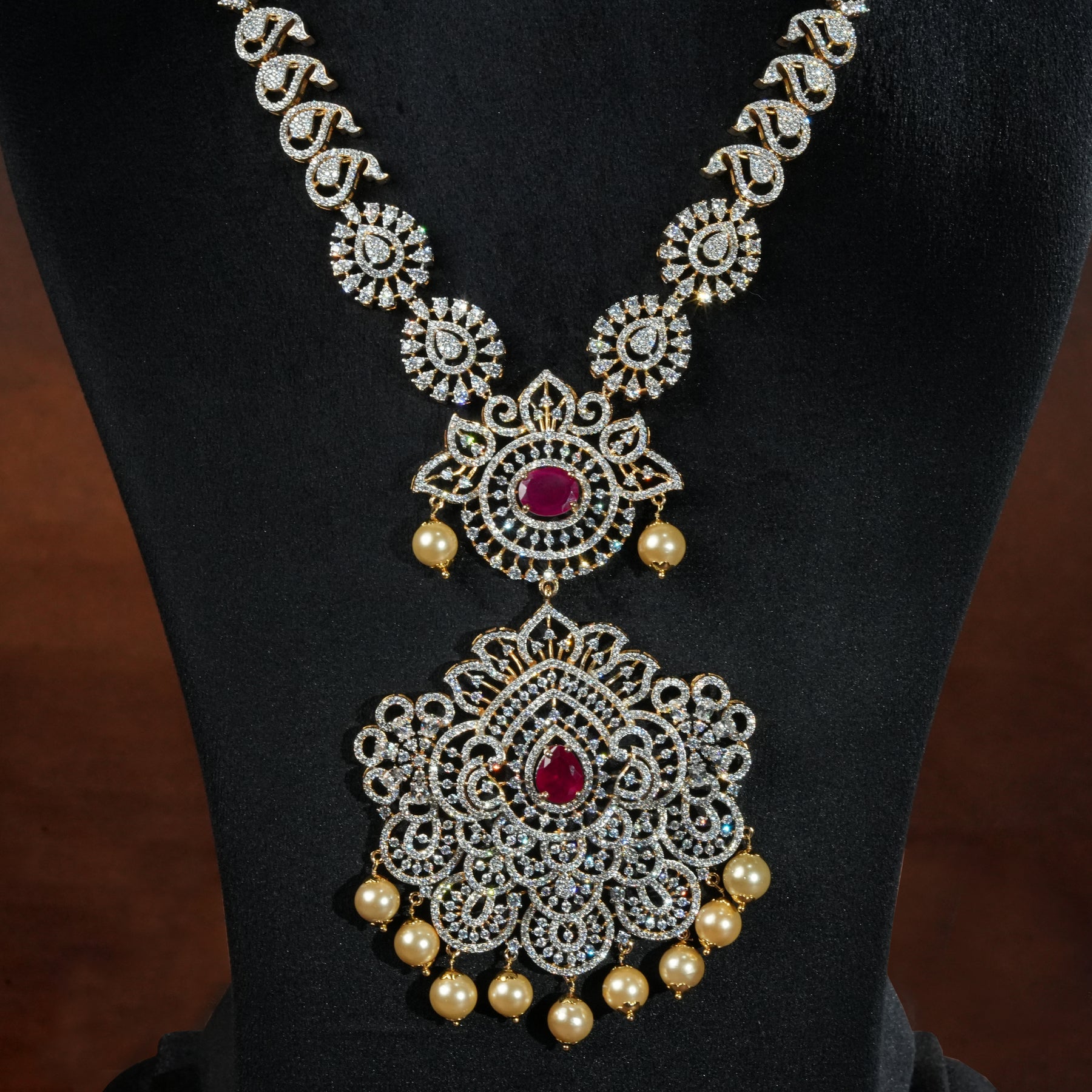 Elevate your collection with this exquisite handcrafted sterling silver necklace, featuring authentic cubic zirconia stones paired with semi-precious ruby accents. Each piece showcases a distinctive one-of-a-kind design that captures timeless elegance and regal sophistication. The meticulous craftsmanship ensures superior quality, while the brilliant sparkle of genuine CZ stones delivers luxury without compromise. Perfect for those who appreciate fine jewelry with character and refined taste.