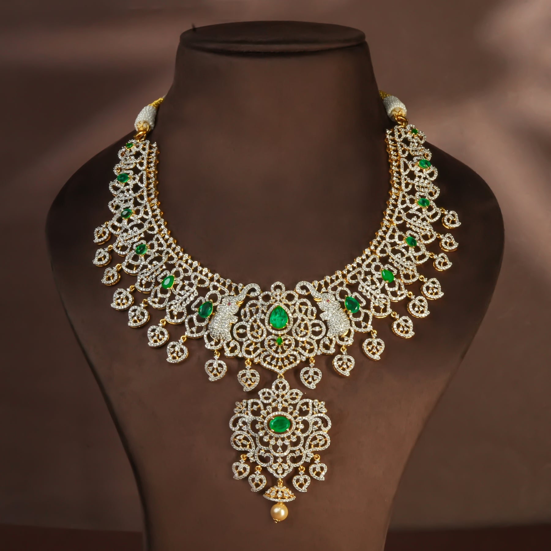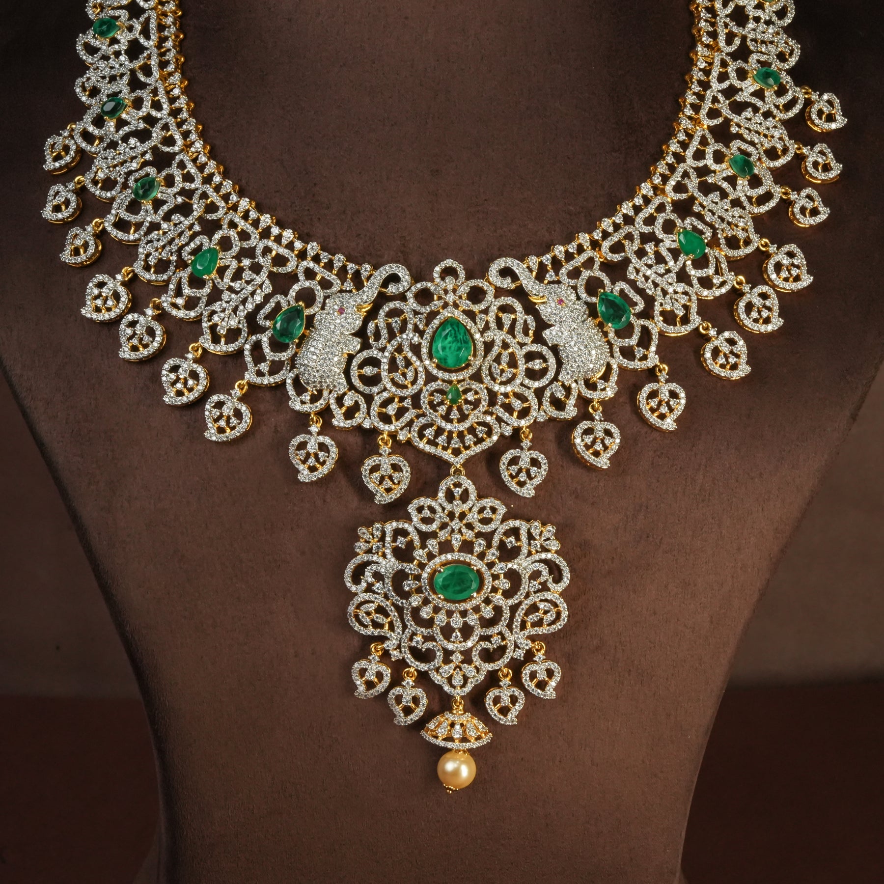 Elevate your collection with this exquisite handcrafted silver necklace, meticulously designed to exude timeless elegance. Crafted from premium 925 sterling silver, this piece features authentic cubic zirconia stones paired with genuine semi-precious emeralds, creating a captivating interplay of brilliance and natural beauty. The necklace showcases intricately adorned elephant motifs, symbolizing grace and wisdom, lending a regal sophistication to any ensemble. Each piece is individually handcrafted, ensuring a truly one-of-a-kind design that reflects superior artisanal craftsmanship. Perfect for those who appreciate distinctive jewelry with both aesthetic refinement and meaningful symbolism.