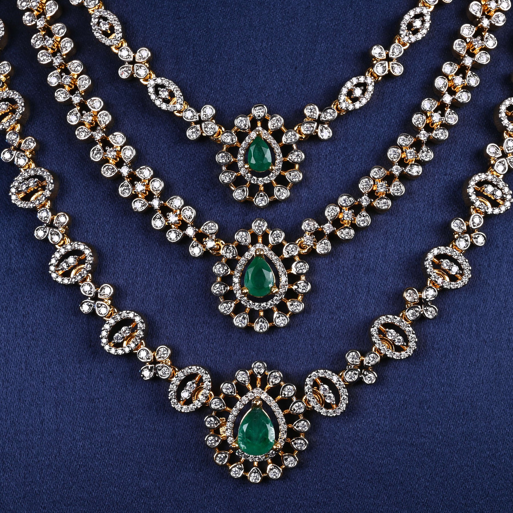 This exquisite 92.5 sterling silver necklace features genuine semi-precious emerald stones complemented by high-quality cubic zirconia accents. Each piece is meticulously handcrafted to achieve a diamond-like brilliance. The sophisticated design showcases expert silversmithing techniques, creating a luxurious statement piece that combines traditional craftsmanship with contemporary elegance.