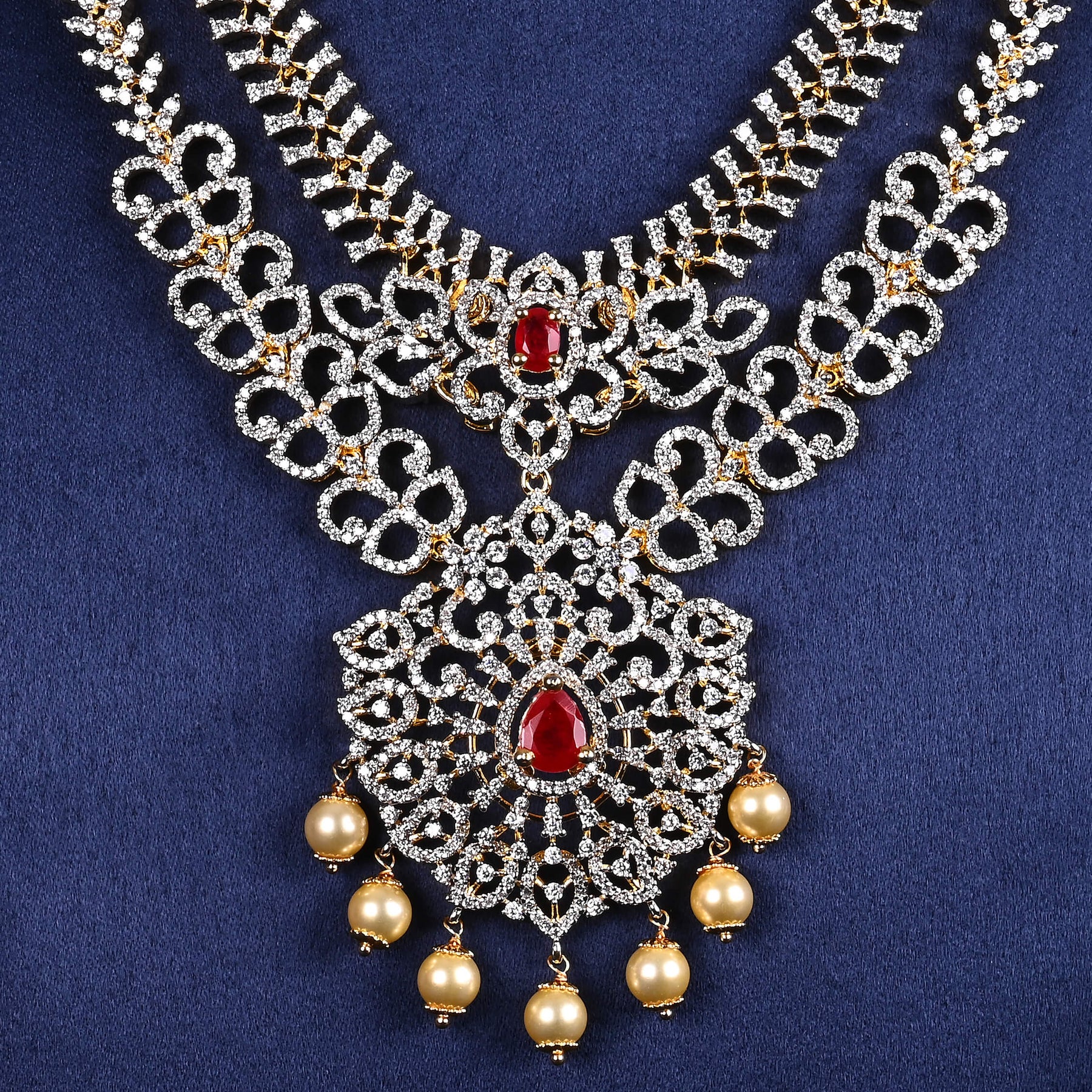 This exquisite 92.5 sterling silver necklace features genuine semi-precious ruby stones complemented by high-quality cubic zirconia accents. Meticulously handcrafted to achieve a diamond-like brilliance, the sophisticated design showcases expert silversmithing techniques. Each element is precisely positioned to maximize light reflection, creating a luxurious piece that combines traditional craftsmanship with contemporary elegance.