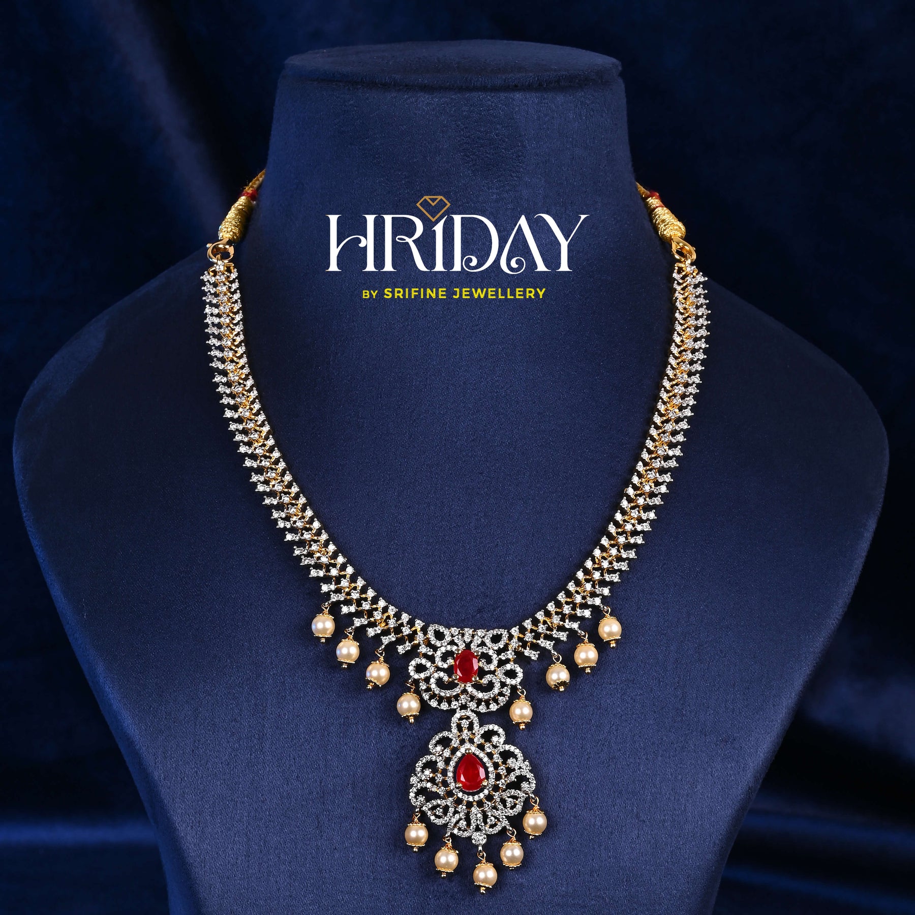 This exquisite 92.5 sterling silver necklace features genuine semi-precious ruby stones complemented by high-quality cubic zirconia accents. Each piece is meticulously handcrafted with diamond-like precision, showcasing superior artisanship. The combination of vibrant rubies and brilliant CZ stones creates a sophisticated statement piece suitable for both special occasions and elegant everyday wear.