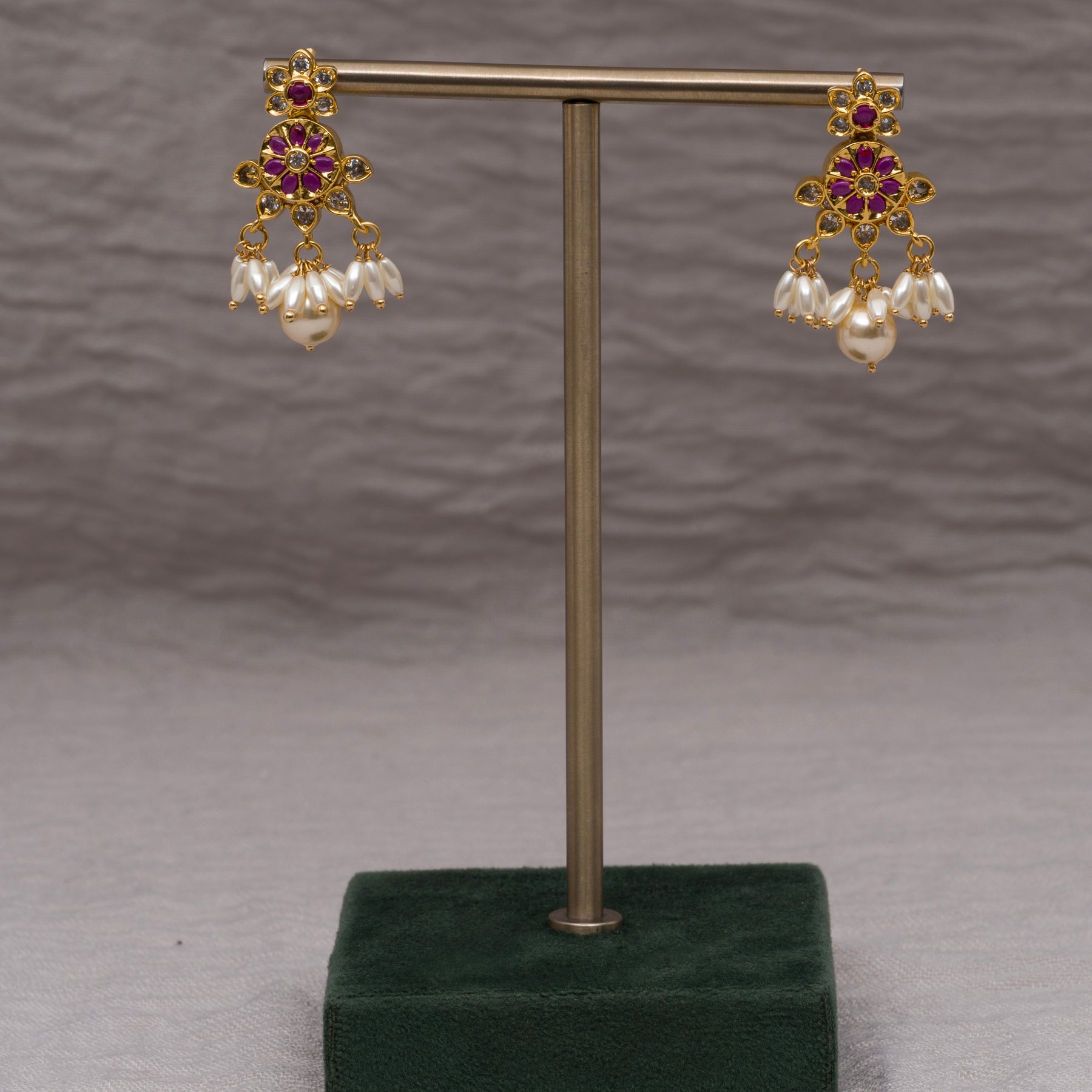 Experience the luxury of our Guttapusal Necklace Set. Made with top quality semi-precious rice pearls, real cz stones, and semi-precious ruby; this one of a kind design is handmade and exclusive. With its real gold look and feel, you'll feel like a true fashion icon.