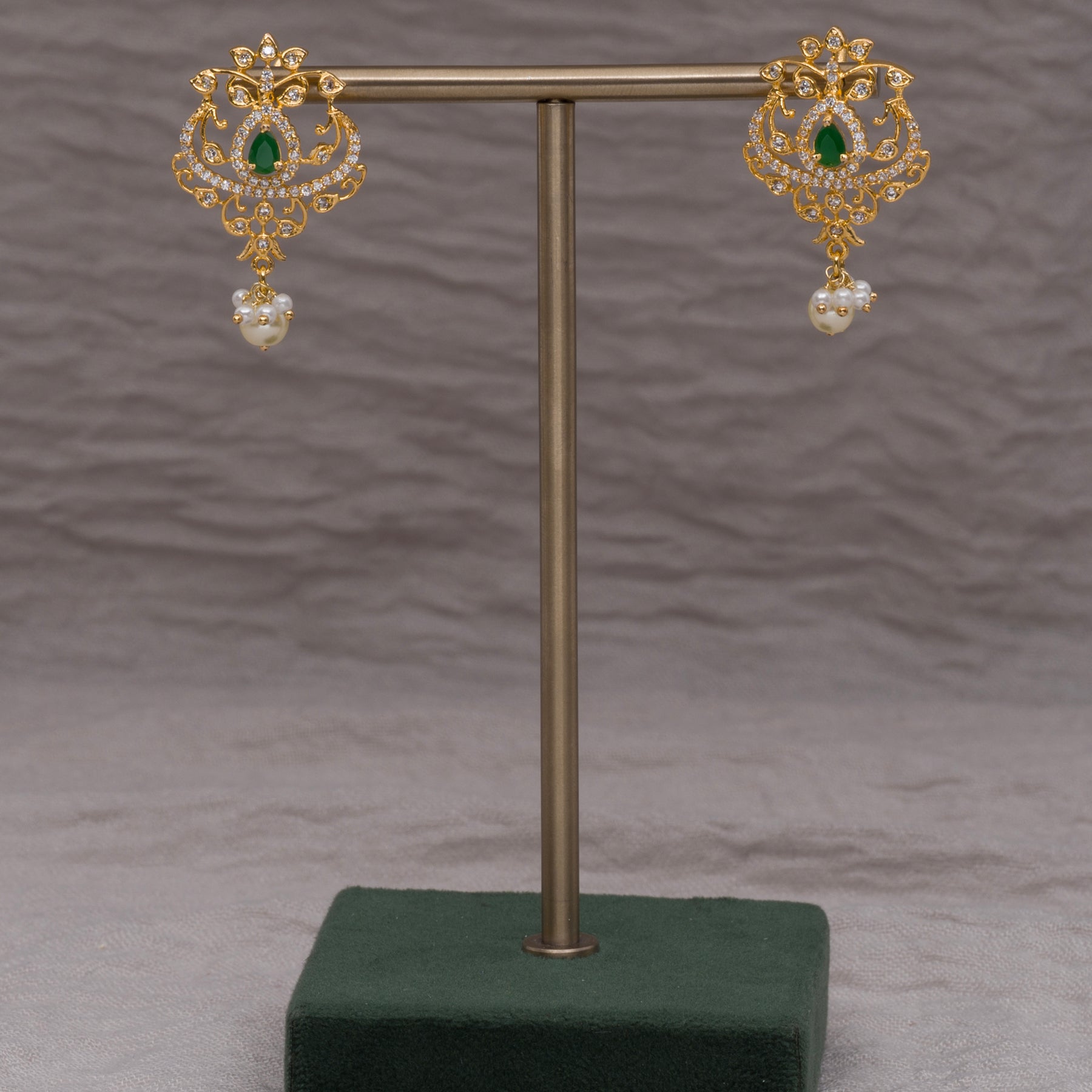 This luxurious necklace set boasts top quality semi-precious round pearls and real cz stones for a stunning look. The handmade design features semi-precious emeralds and a one of a kind luxury design. With a real gold look and feel, this necklace set is a must-have for any special occasion.