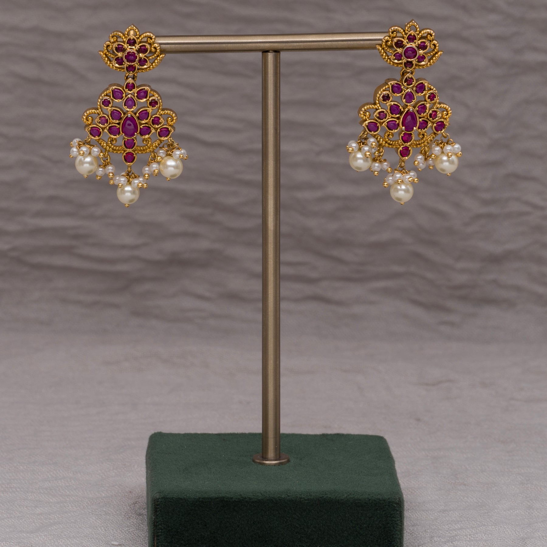Indulge in luxury with our handcrafted Guttapusal necklace set. Featuring top quality semi-precious round pearls, real cz stones, and a semi-precious ruby, this one-of-a-kind design exudes elegance and sophistication. The handmade craftsmanship and real gold look and feel make this necklace set a must-have for any special occasion.