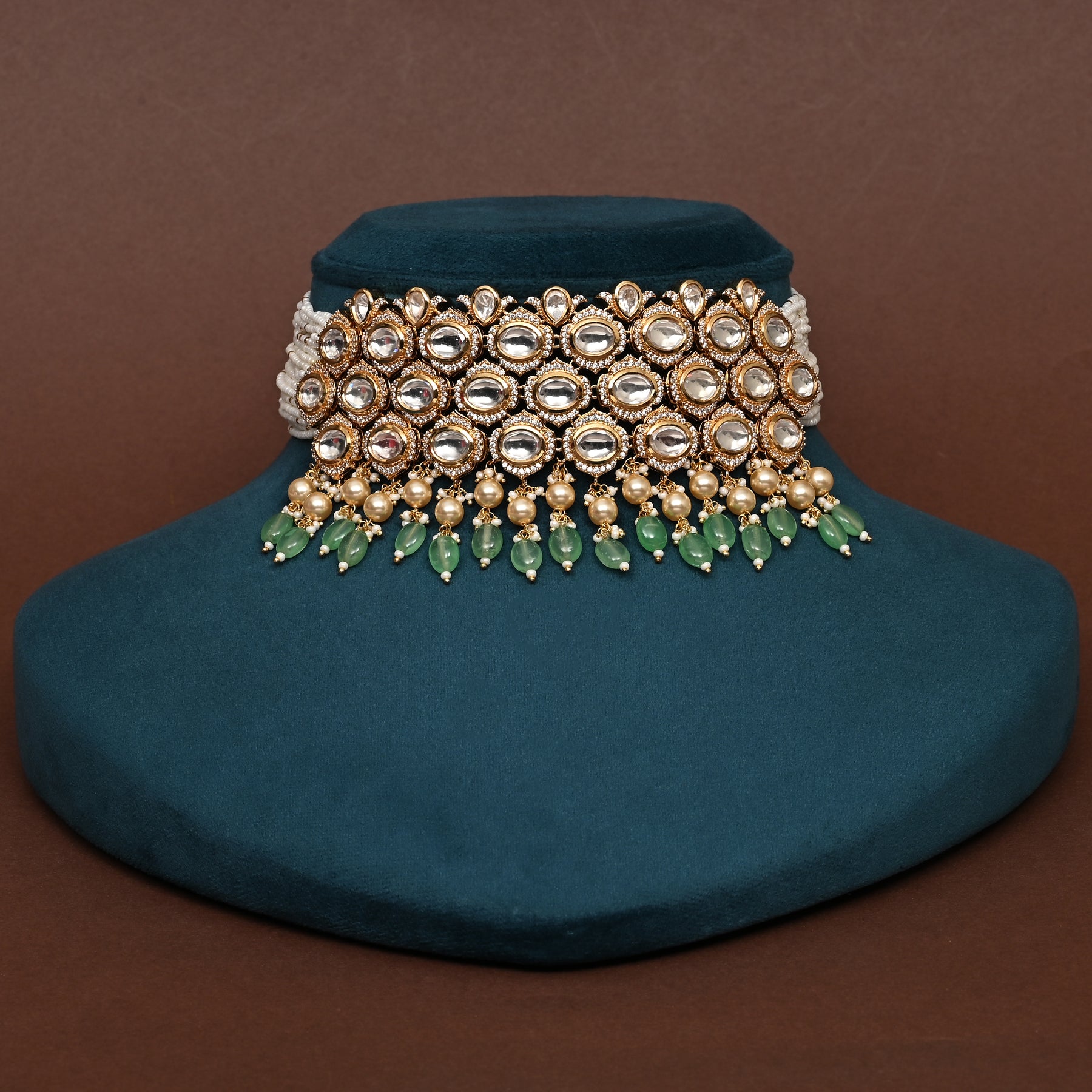This Moissanite Choker Set combines real CZ and moissanite stones to replicate the stunning brilliance of real diamonds. Handcrafted with precision, each piece features a unique, one-of-a-kind design that highlights exceptional craftsmanship. Ideal for those who appreciate the elegance and sparkle of diamonds with lasting durability and refined style.