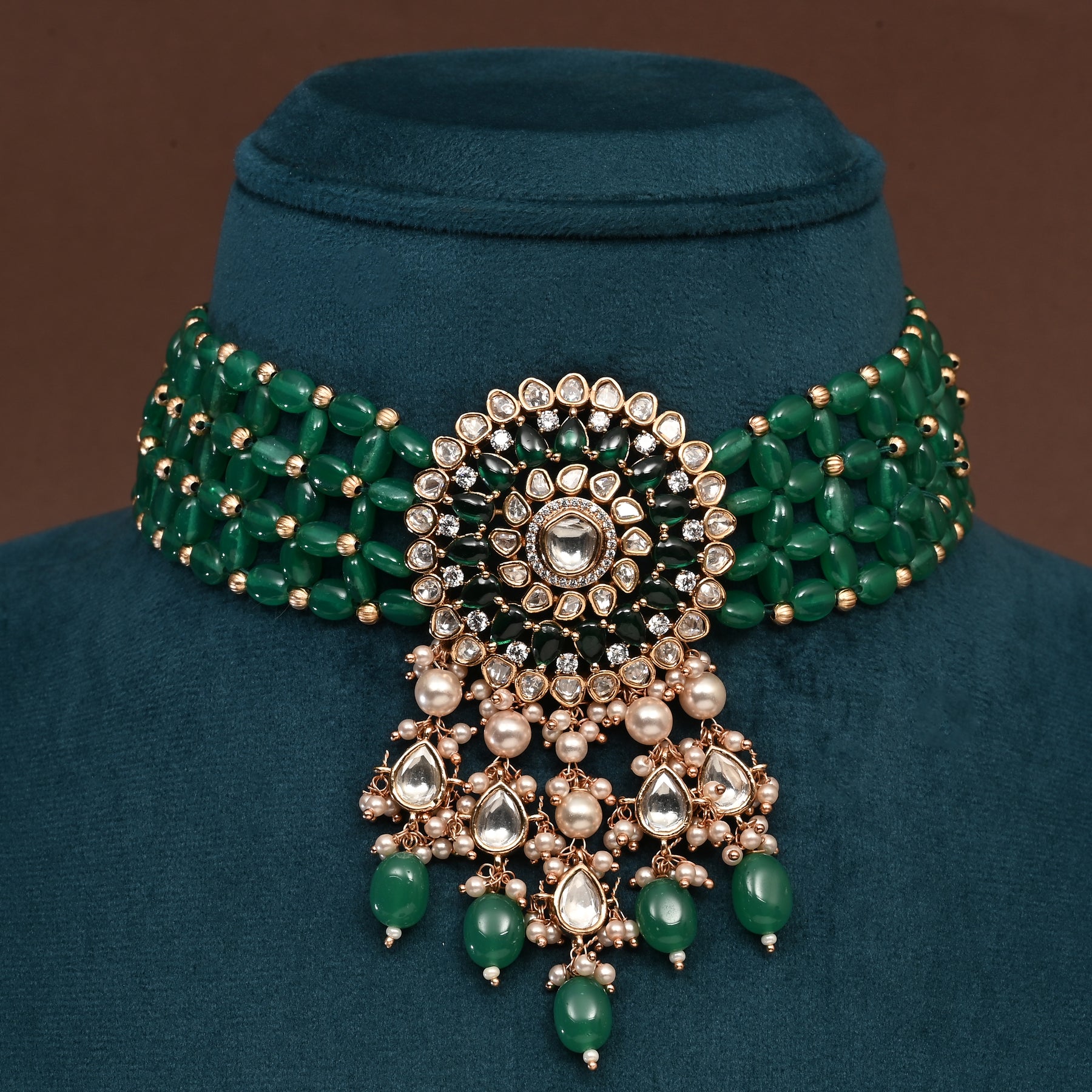 Elevate your elegance with this handcrafted Moissanite Choker Set, featuring dazzling real CZ and moissanite stones that closely mimic the brilliance of real diamonds. Each piece is uniquely designed to offer a one-of-a-kind look, combining expert craftsmanship with timeless sparkle for a sophisticated statement. Perfect for those seeking luxury with exceptional value and unmatched shine.