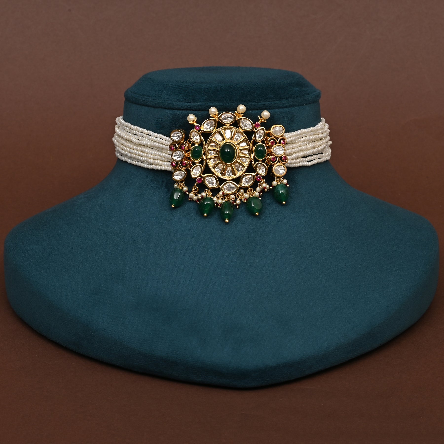 Elevate your elegance with this handcrafted Moissanite Choker Set, featuring dazzling real CZ and moissanite stones that closely mimic the brilliance of real diamonds. Each piece is uniquely designed to offer a one-of-a-kind look, combining expert craftsmanship with timeless sparkle for a sophisticated statement. Perfect for those who appreciate luxury with exceptional value.