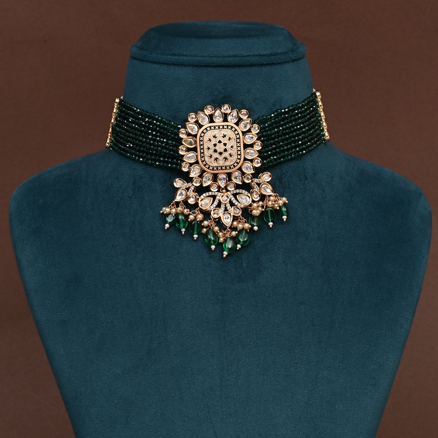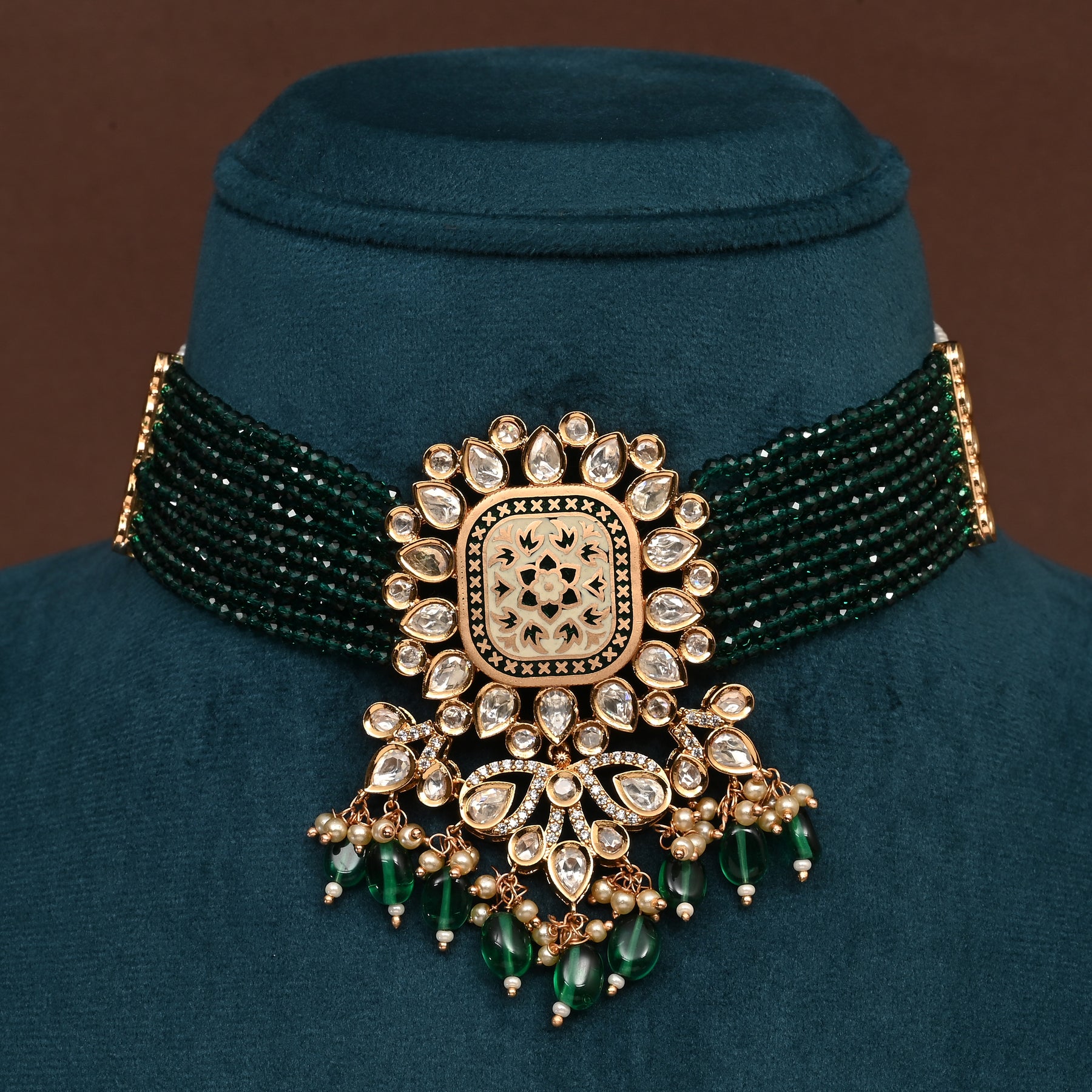 Elevate your elegance with this handcrafted Moissanite Choker Set, featuring expertly cut moissanite and real cubic zirconia stones that mimic the brilliance of diamonds. Each piece showcases a unique, one-of-a-kind design, combining exceptional craftsmanship with the dazzling sparkle of genuine diamond-like stones for a timeless, sophisticated look.