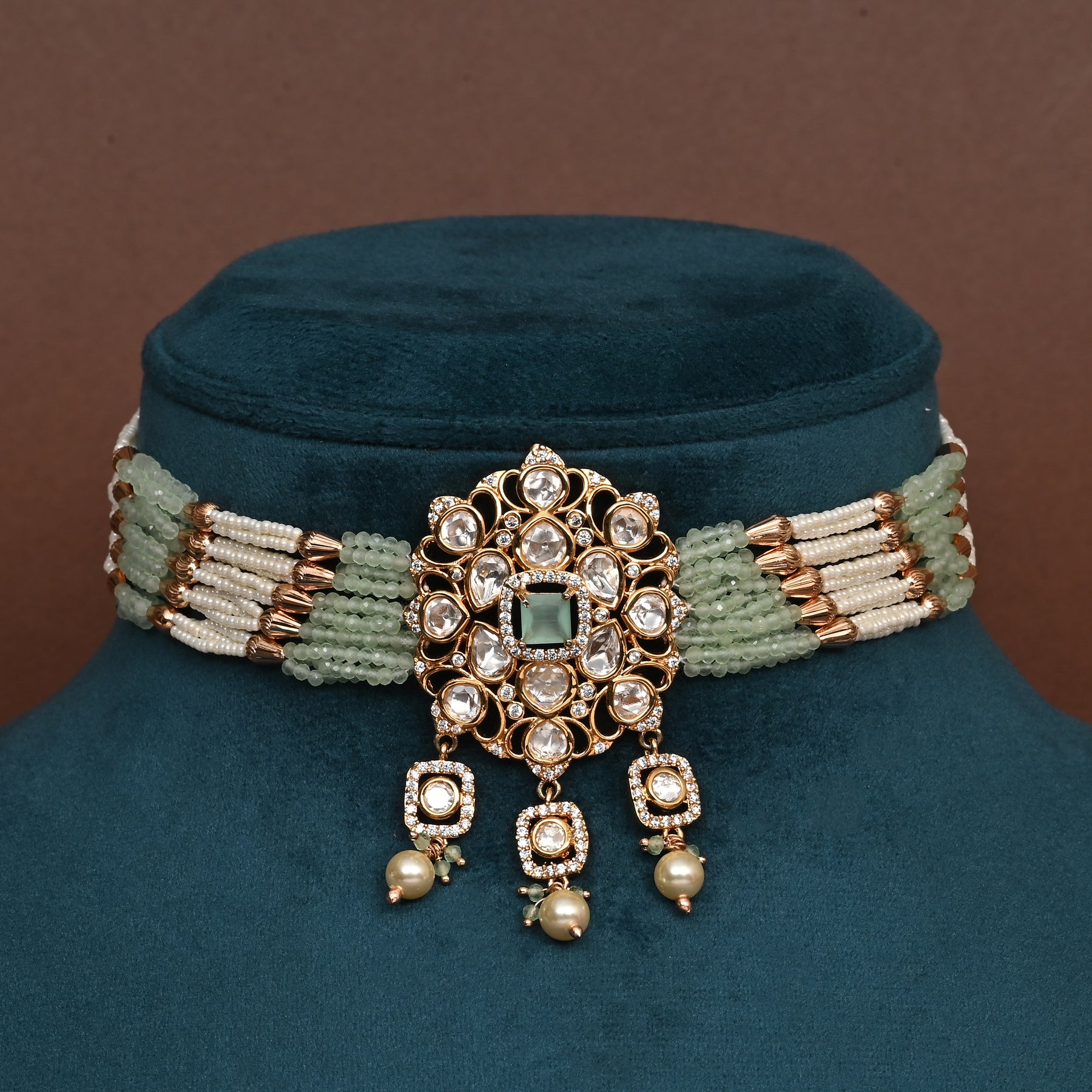 Elevate your elegance with this handcrafted Moissanite Choker Set, featuring brilliant moissanite and real cubic zirconia stones that mimic the sparkle of genuine diamonds. Each piece is uniquely designed to offer a one-of-a-kind look, combining expert craftsmanship with timeless beauty for a sophisticated statement.