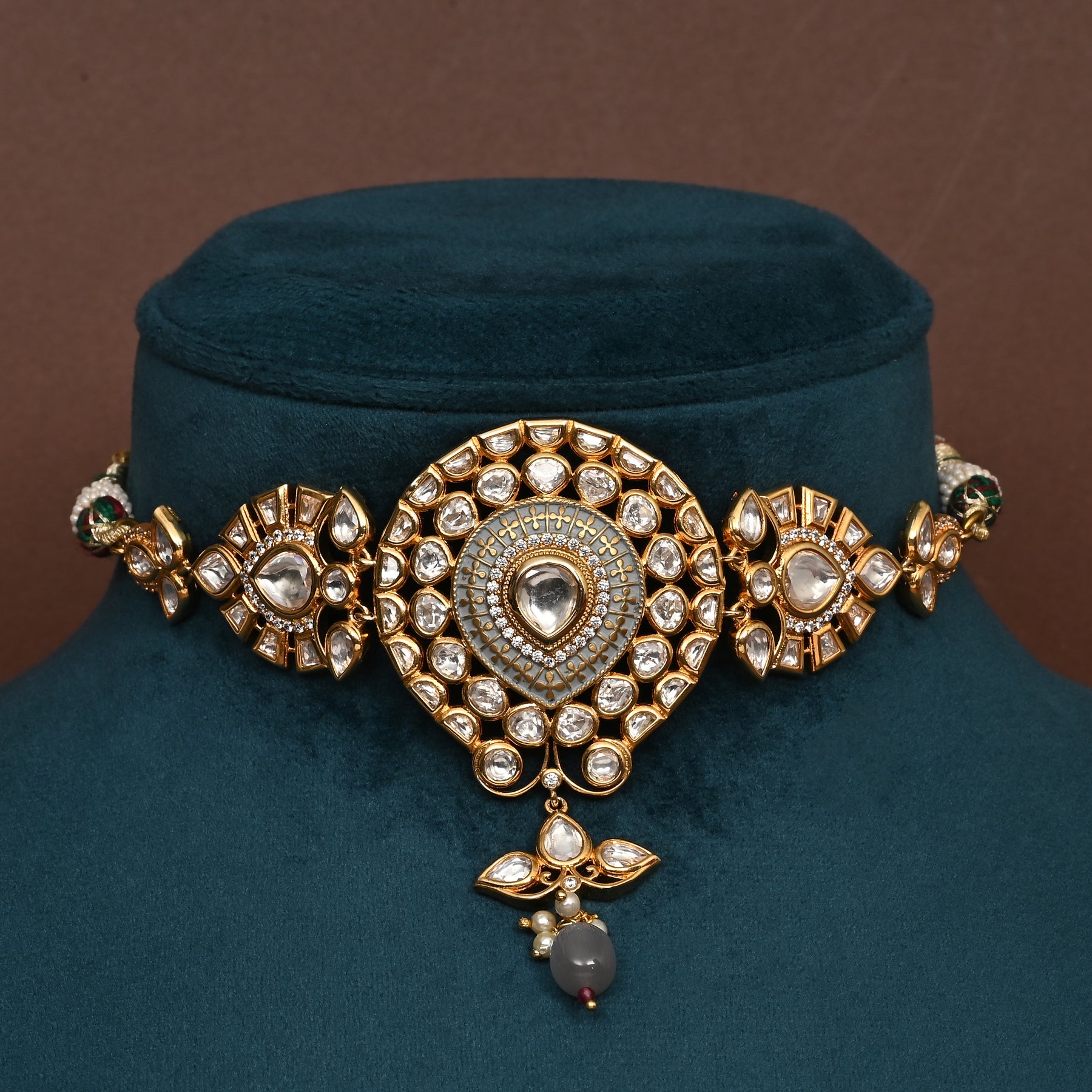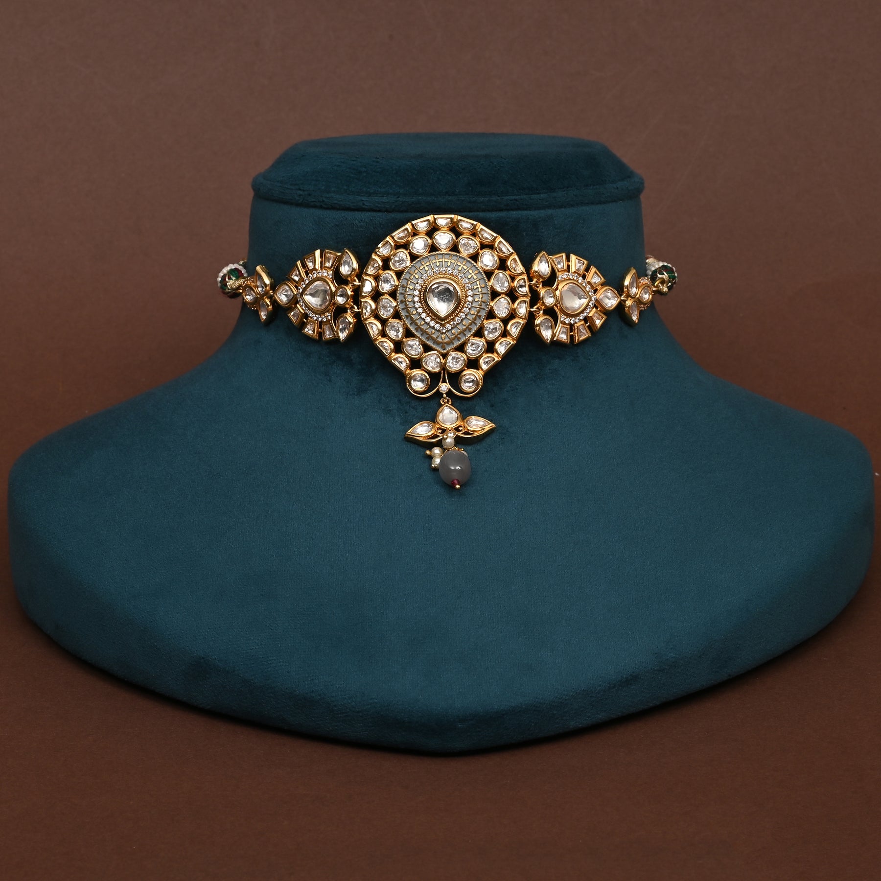 Elevate your elegance with this handcrafted Moissanite Choker Set, featuring genuine moissanite and CZ stones that brilliantly mimic the sparkle of real diamonds. Each piece showcases a unique, one-of-a-kind design, expertly crafted to offer timeless beauty and exceptional brilliance. Perfect for those seeking luxury with a distinctive touch.