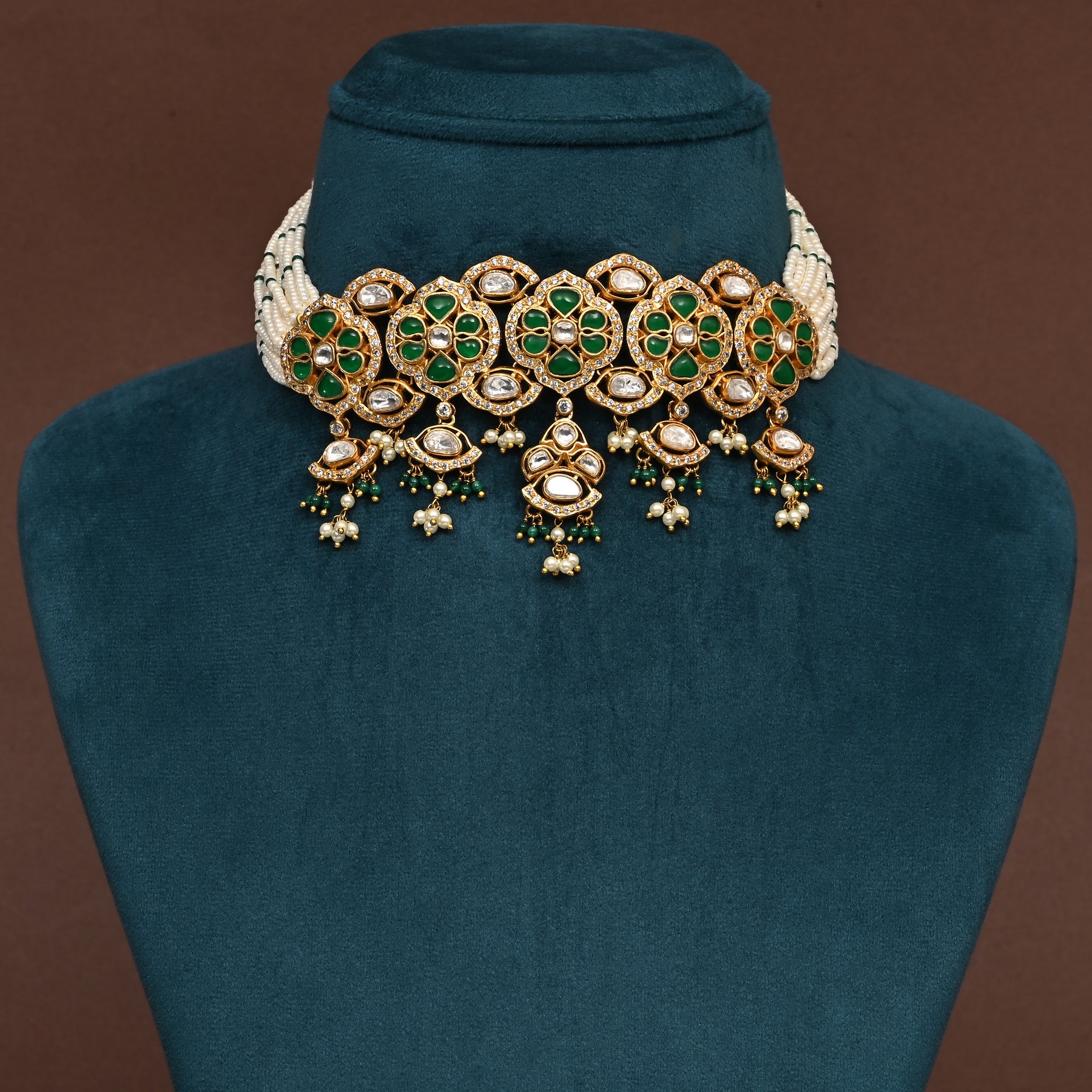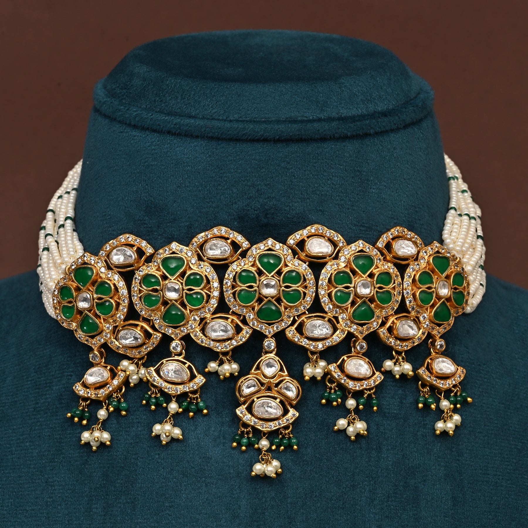 Elevate your elegance with this handcrafted Moissanite Choker Set, featuring dazzling real CZ and moissanite stones that closely mimic the brilliance of real diamonds. Each piece showcases a unique, one-of-a-kind design, expertly crafted to offer timeless sophistication and exceptional sparkle. Perfect for those who appreciate fine craftsmanship and a luxurious diamond-like appearance without compromise.