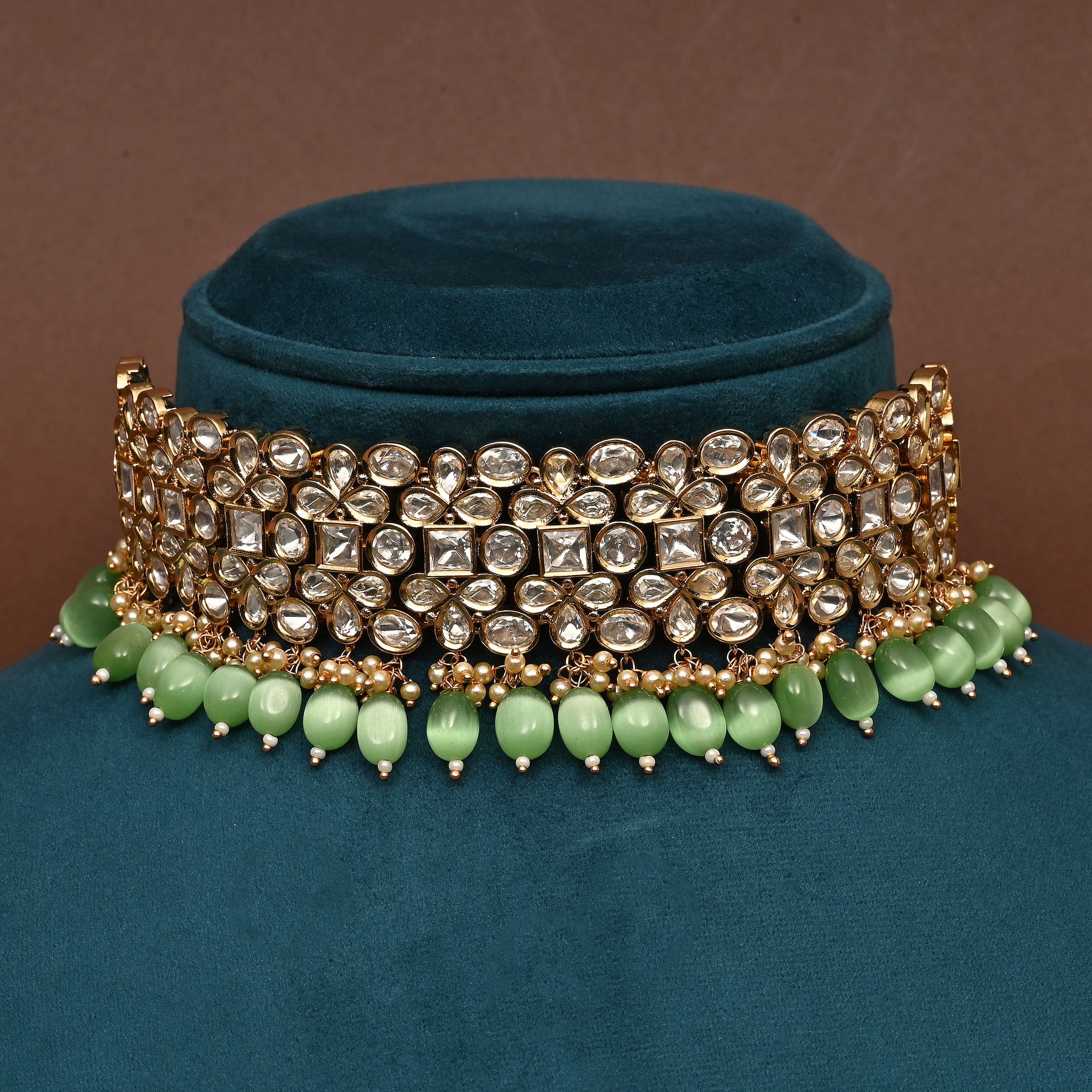 Elevate your elegance with this handcrafted Moissanite Choker Set, featuring dazzling real CZ and moissanite stones that closely mimic the brilliance of real diamonds. Each piece showcases a unique, one-of-a-kind design, expertly crafted to offer timeless sparkle and sophistication. Perfect for those seeking luxury with exceptional clarity and shine, this set combines artistry and premium materials for a stunning statement.