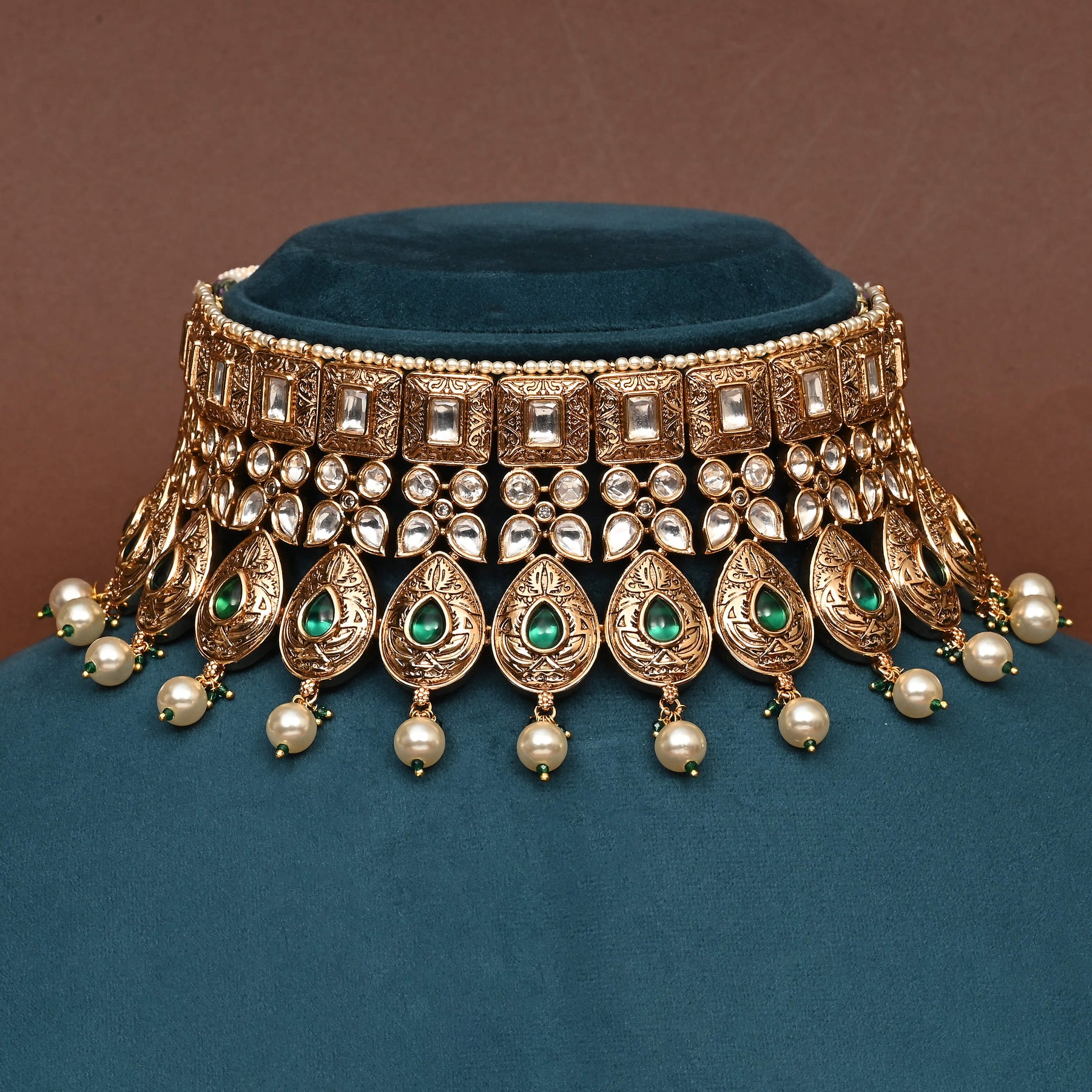 Elevate your elegance with this handcrafted Moissanite Choker Set, featuring dazzling real CZ and moissanite stones that closely mimic the brilliance of real diamonds. Each piece showcases a unique, one-of-a-kind design, expertly crafted to offer timeless sparkle and sophistication. Perfect for those seeking luxury with exceptional clarity and fire, this set combines artistry and premium materials for a stunning diamond-like appearance.