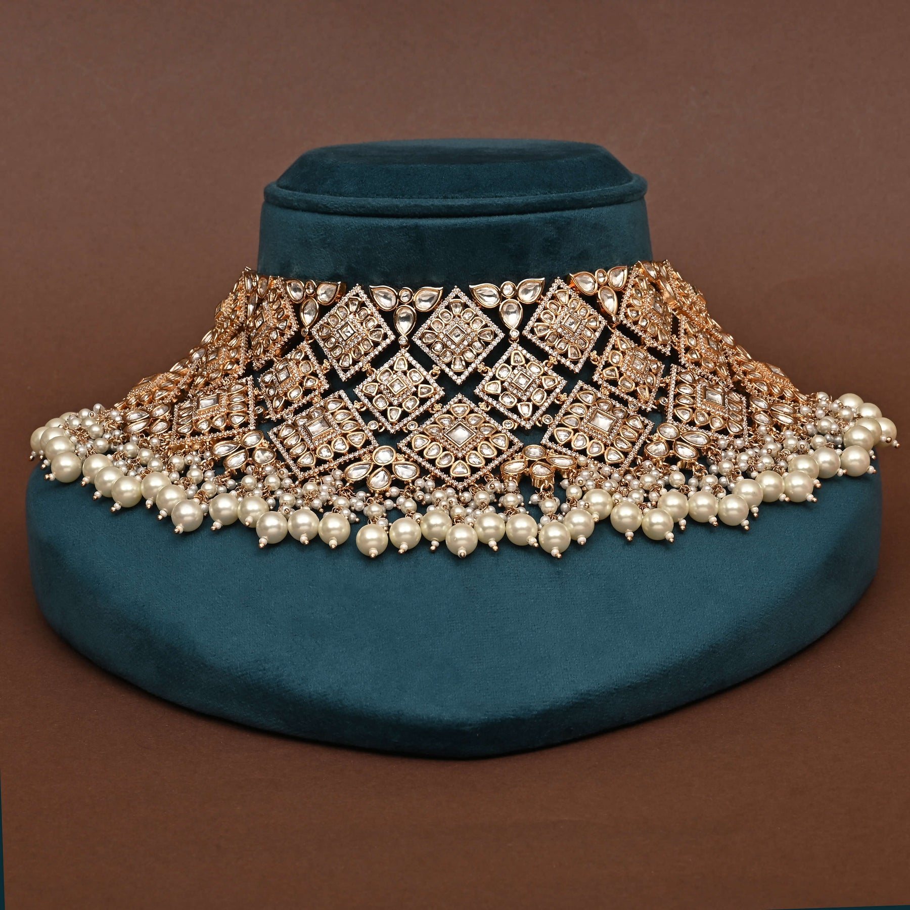 Elevate your elegance with this handcrafted Moissanite Choker Set, featuring dazzling real CZ and moissanite stones that closely mimic the brilliance of real diamonds. Each piece is uniquely designed to offer a one-of-a-kind statement, combining expert craftsmanship with timeless sparkle for a sophisticated look that stands out.