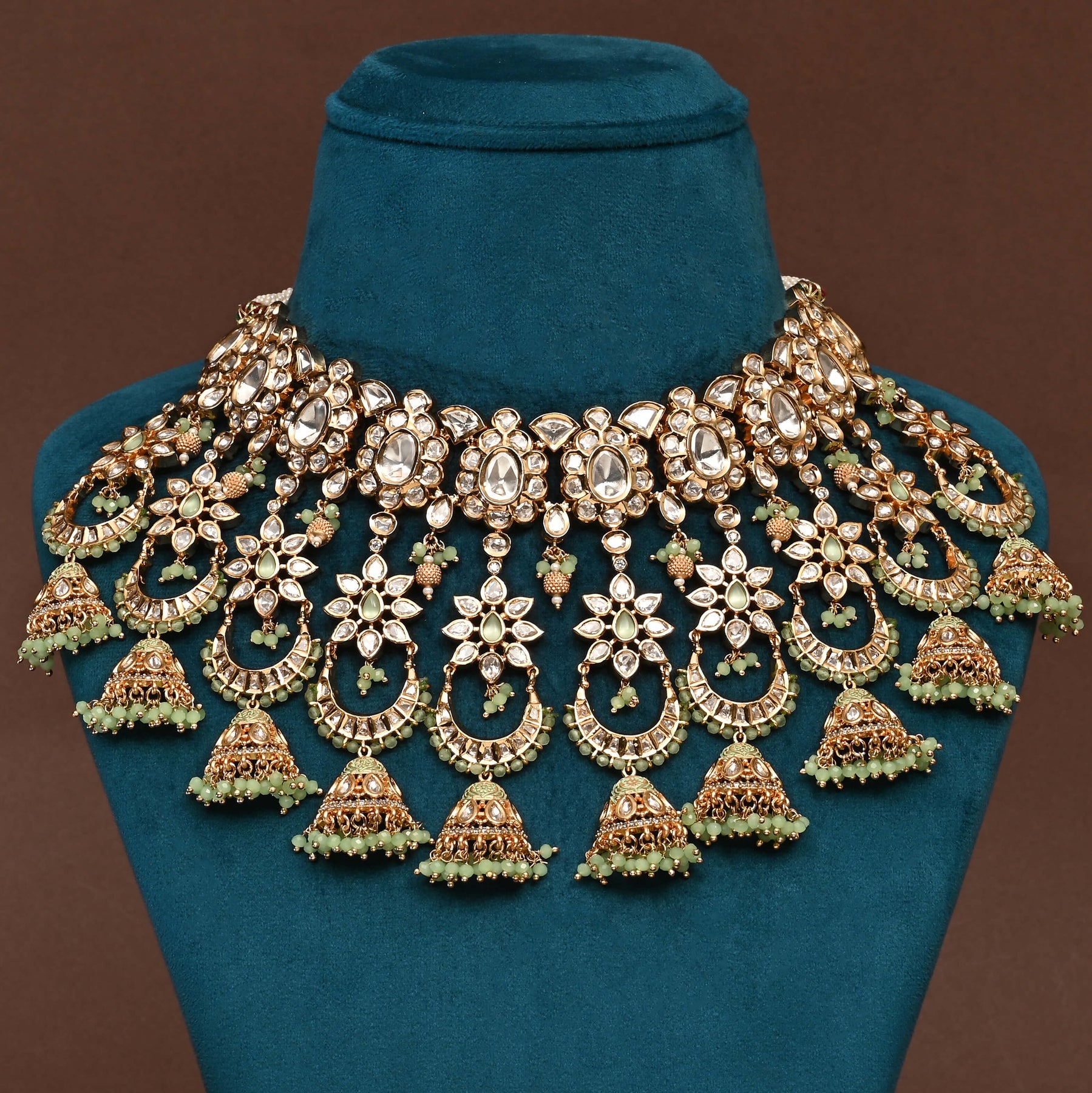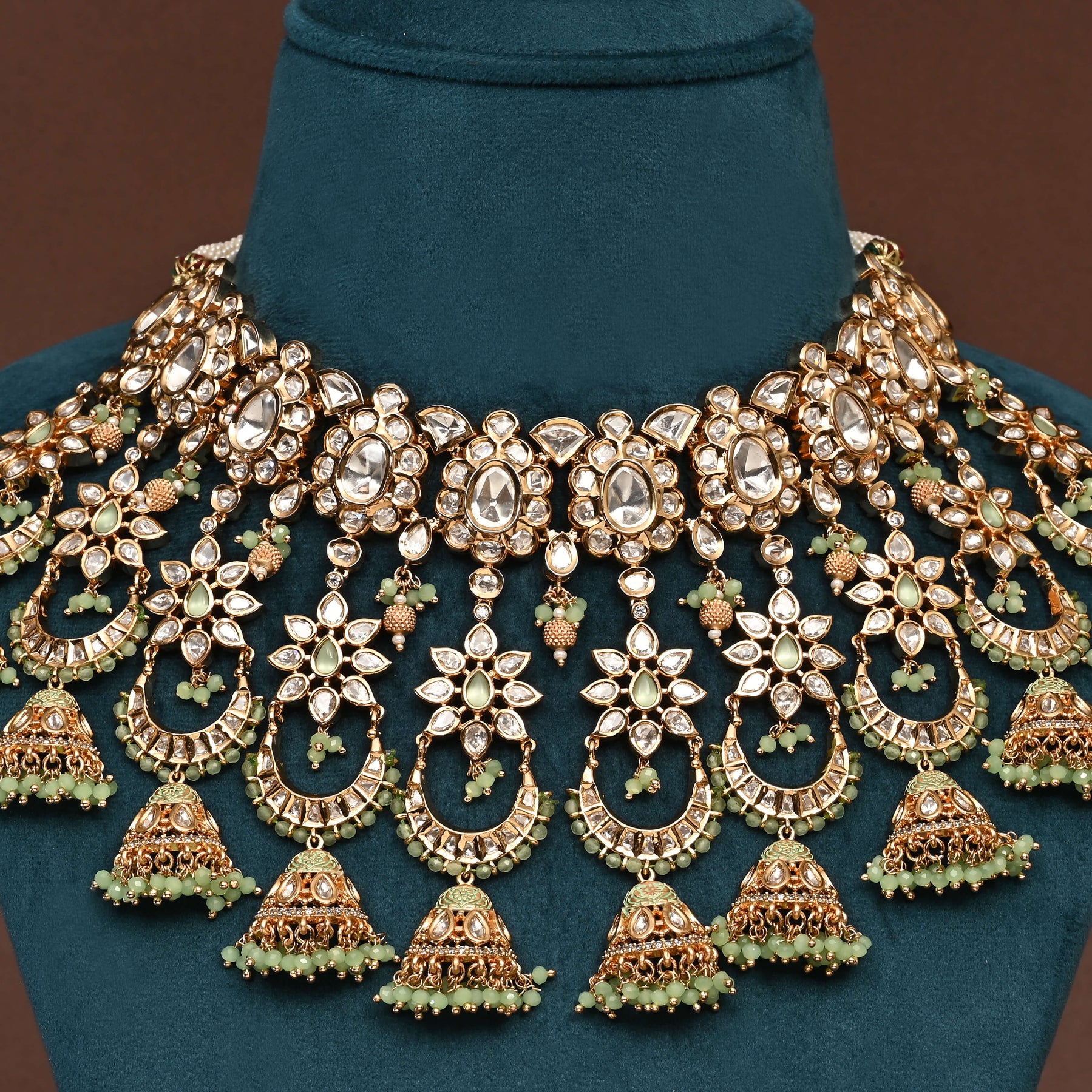 Elevate your elegance with this handcrafted Moissanite choker set, featuring real CZ and moissanite stones that closely mimic the brilliance of diamonds. Each piece showcases a unique, one-of-a-kind design, combining expert craftsmanship with stunning sparkle for a timeless, sophisticated look. Perfect for those seeking the allure of diamonds with exceptional value and durability.