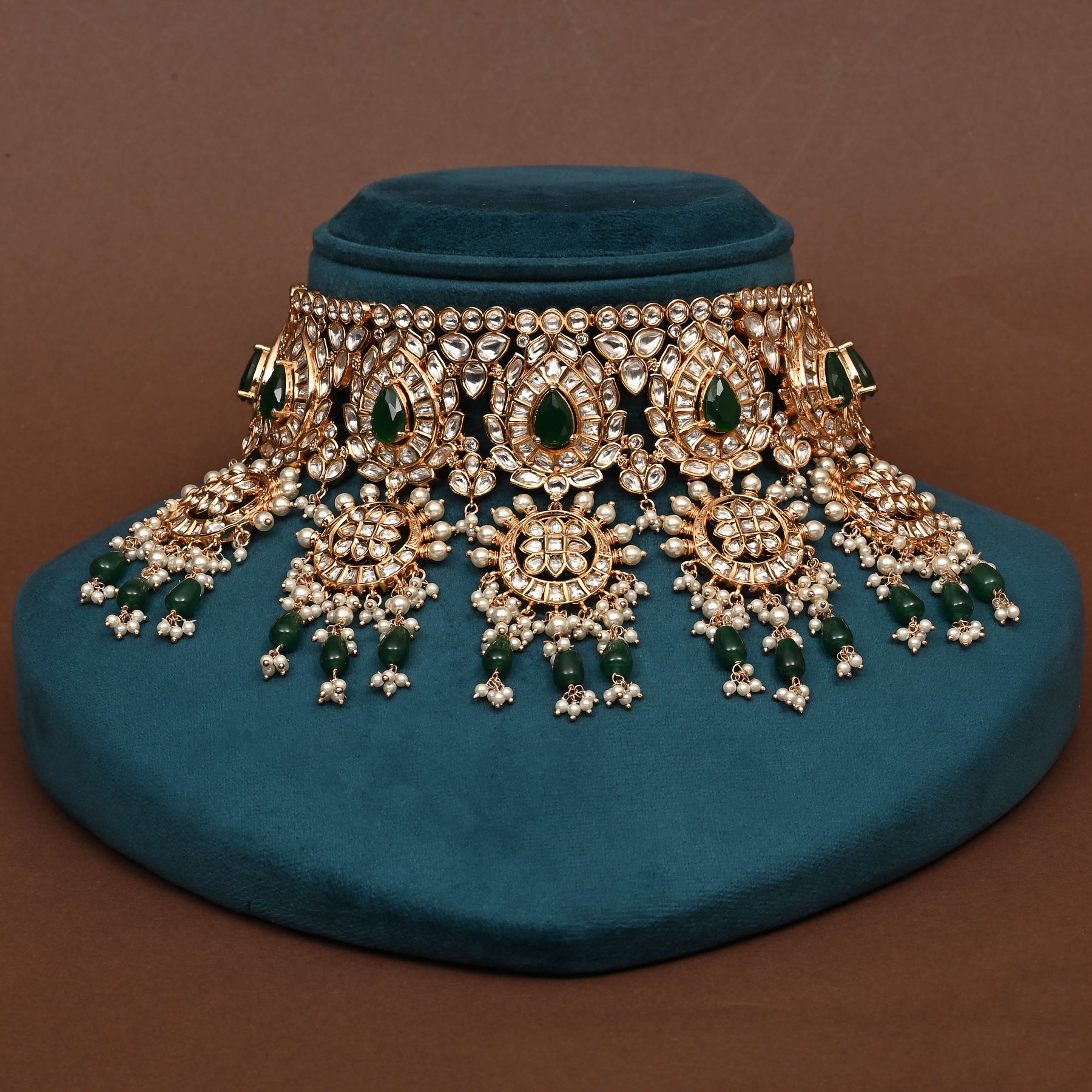 Elevate your elegance with this handcrafted Moissanite Choker Set, featuring dazzling real CZ and moissanite stones that closely mimic the brilliance of real diamonds. Each piece showcases a unique, one-of-a-kind design, expertly crafted to offer timeless sophistication and exceptional sparkle. Perfect for those who appreciate fine craftsmanship and the allure of diamond-like radiance without compromise.