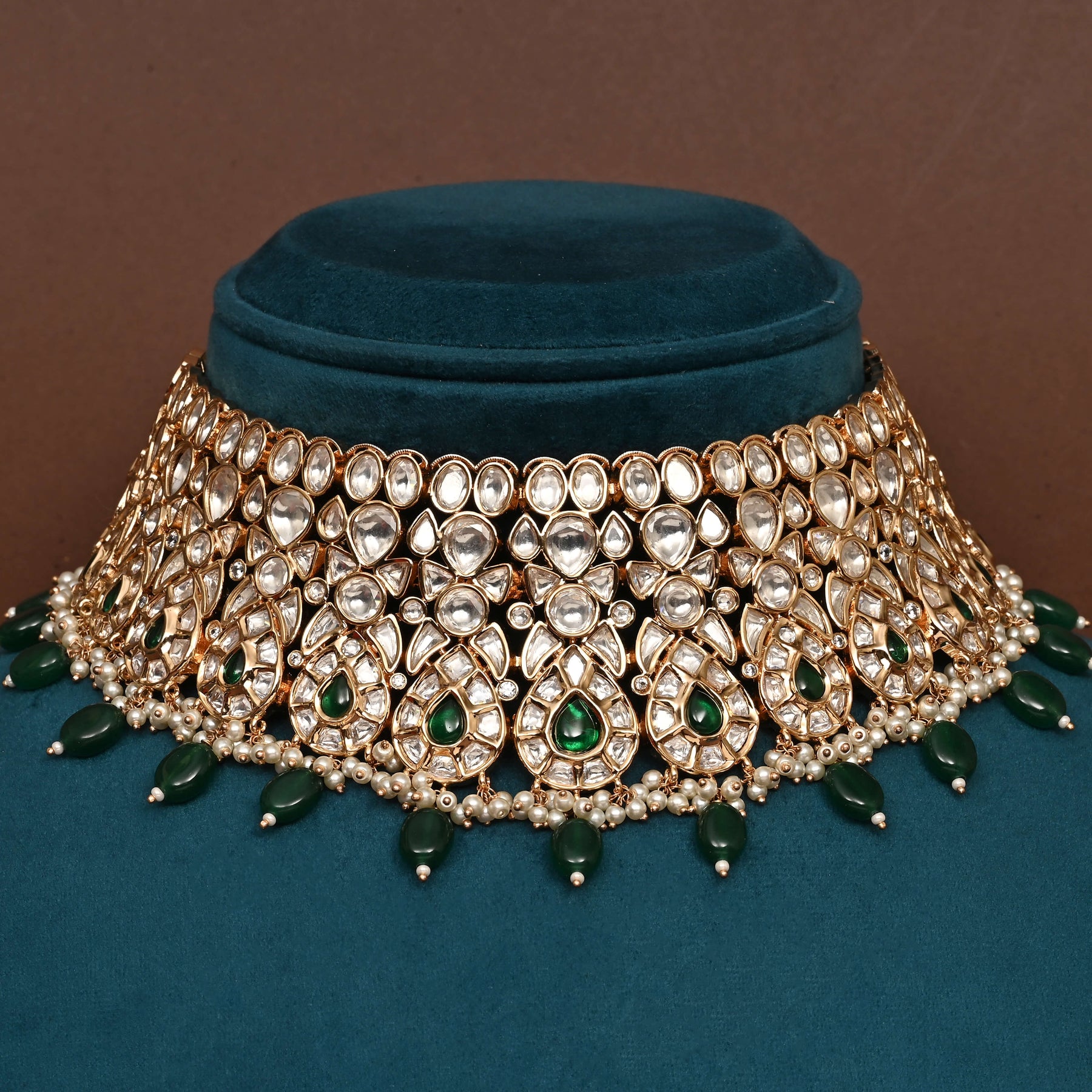 Elevate your elegance with this handcrafted Moissanite Choker Set, featuring dazzling real CZ and moissanite stones that closely mimic the brilliance of real diamonds. Each piece is uniquely designed to offer a one-of-a-kind look, combining expert craftsmanship with exceptional sparkle for a timeless statement. Perfect for those seeking luxury with lasting shine and sophistication.