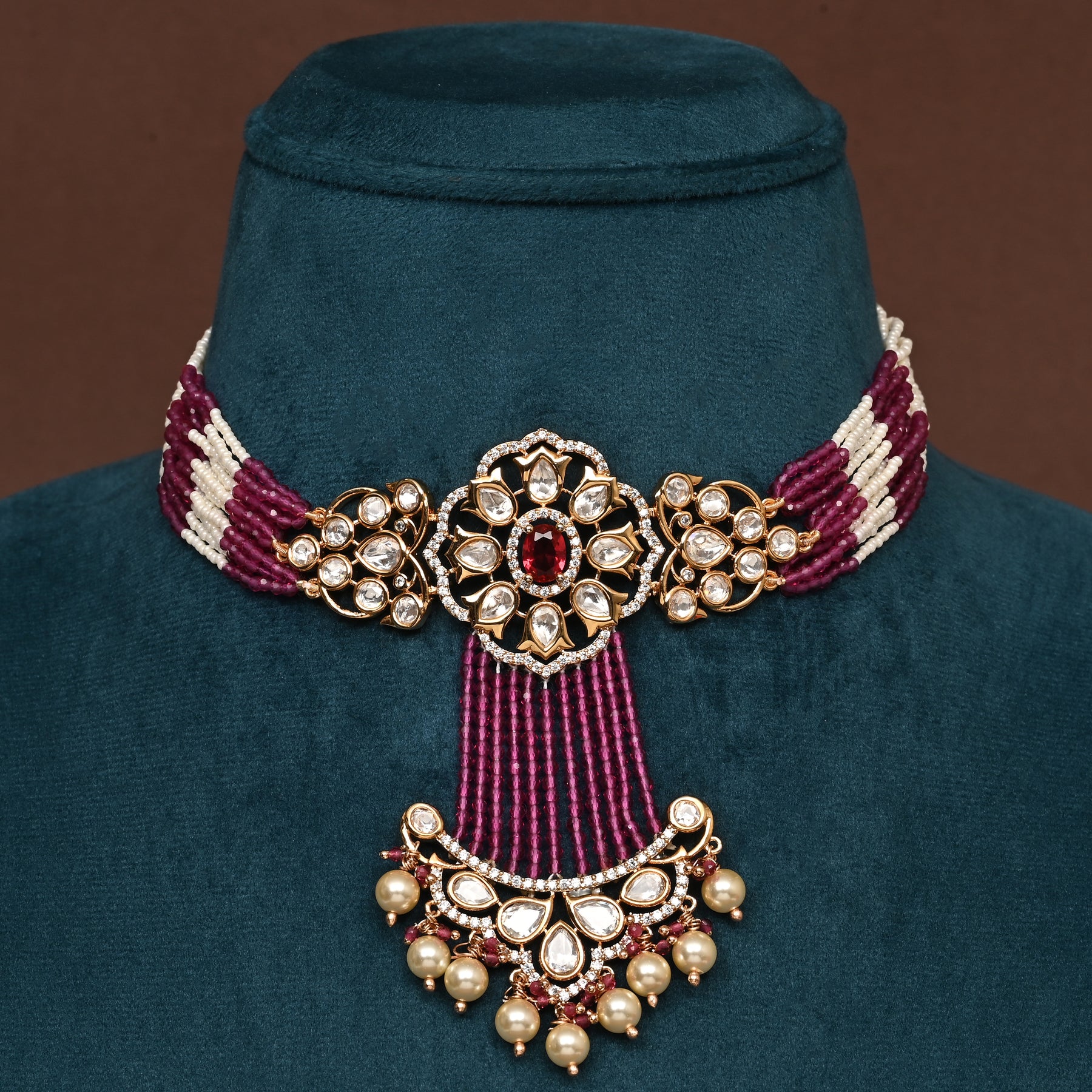 Elevate your elegance with this handcrafted Moissanite Choker Set, featuring dazzling real CZ and moissanite stones that closely mimic the brilliance of real diamonds. Each piece showcases a unique, one-of-a-kind design, expertly crafted to offer timeless sophistication and exceptional sparkle. Perfect for those who appreciate fine craftsmanship and the allure of diamond-like radiance without compromise.