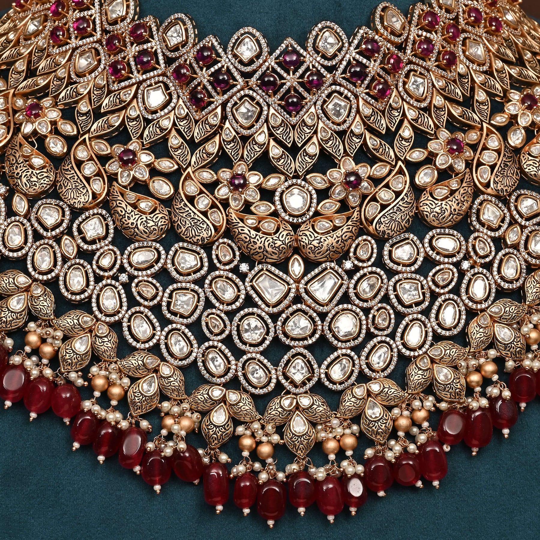 Elevate your elegance with this handcrafted Moissanite Choker Set, featuring dazzling real CZ and moissanite stones that closely mimic the brilliance of real diamonds. Each piece showcases a unique, one-of-a-kind design, expertly crafted to offer exceptional sparkle and timeless sophistication. Perfect for those seeking luxury with a distinctive touch.