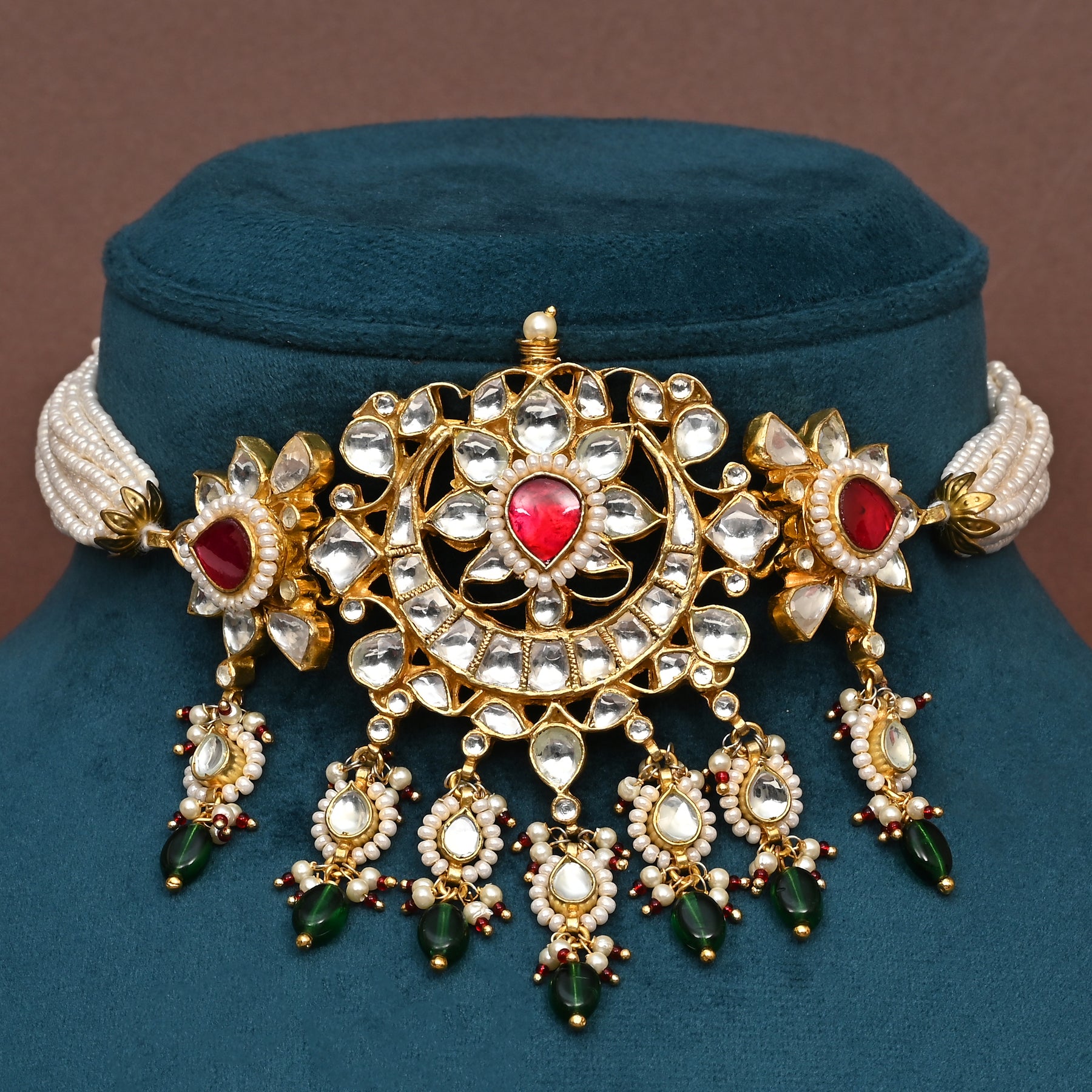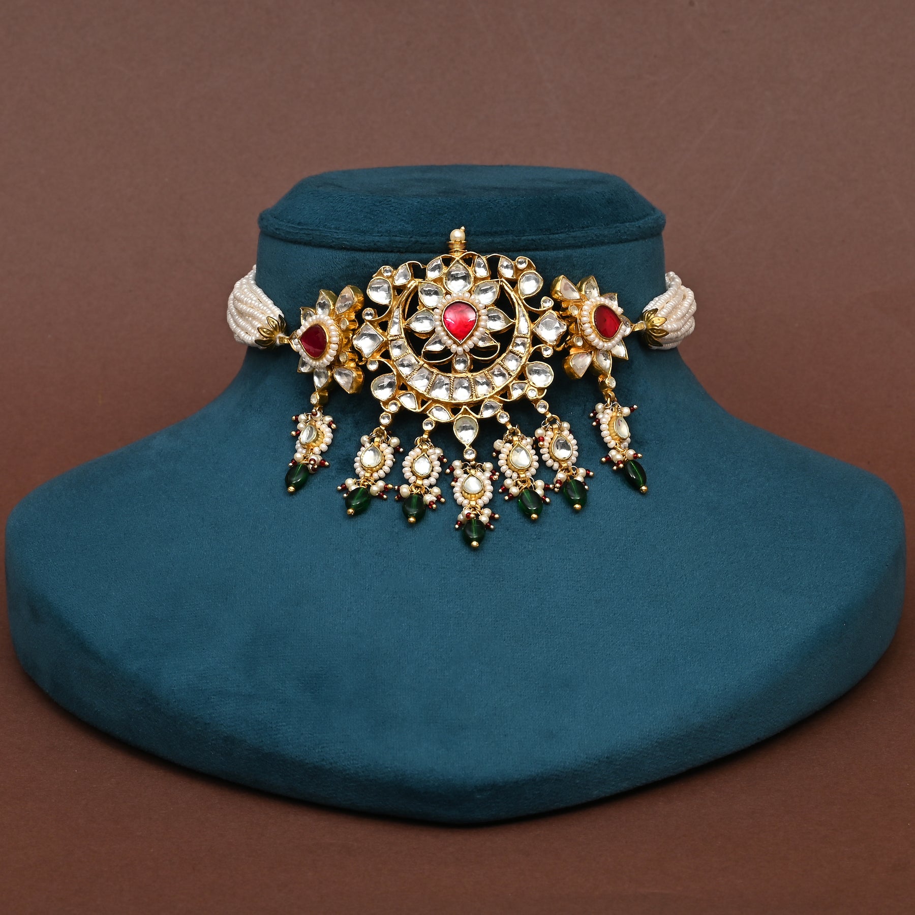 Elevate your elegance with this handcrafted Moissanite Choker Set, featuring dazzling moissanite and real cubic zirconia stones that mimic the brilliance of real diamonds. Each piece showcases a unique, one-of-a-kind design, expertly crafted to offer timeless sparkle and sophistication. Perfect for those seeking luxury with exceptional clarity and shine.