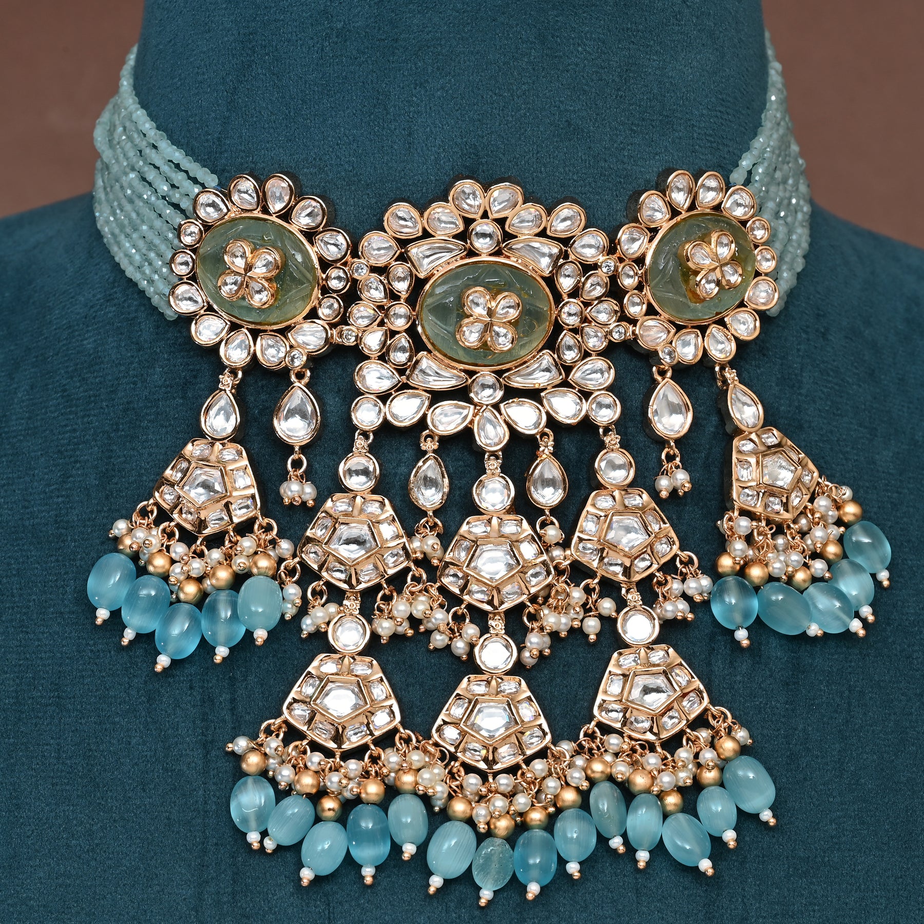 Elevate your elegance with this handcrafted Moissanite Choker Set, featuring dazzling real CZ and moissanite stones that closely mimic the brilliance of real diamonds. Each piece showcases a unique, one-of-a-kind design, expertly crafted to offer timeless sophistication and exceptional sparkle. Perfect for those seeking luxury with lasting shine and refined craftsmanship.