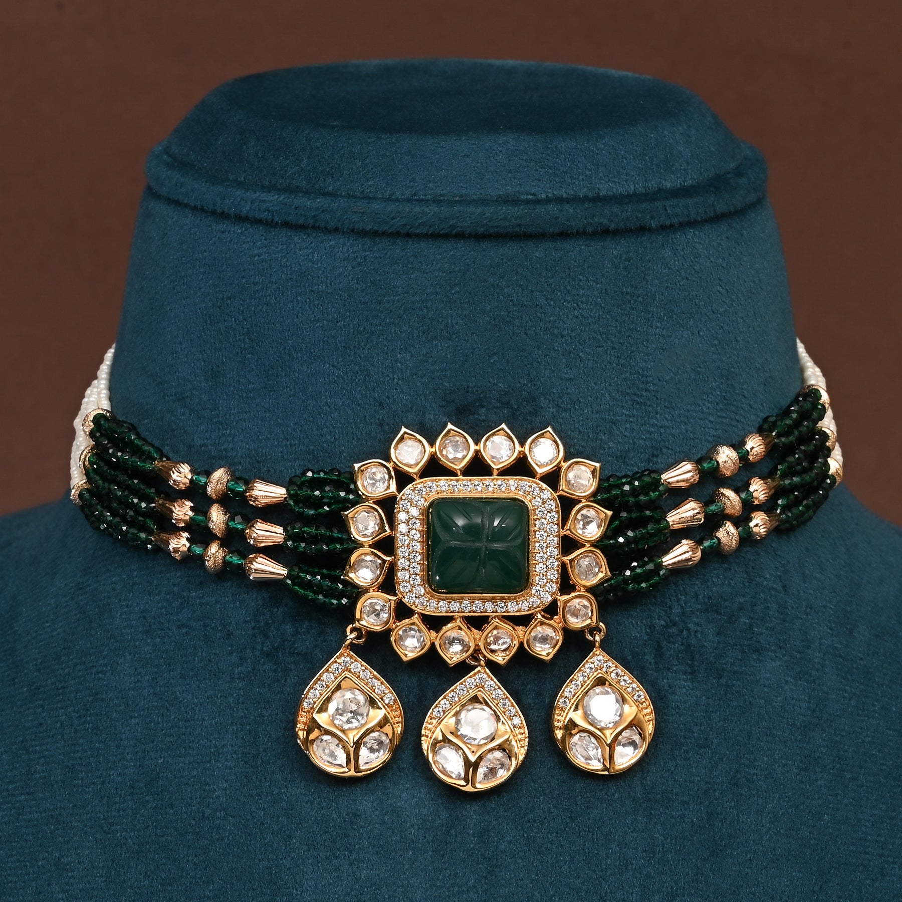 Elevate your elegance with this handcrafted Moissanite Choker Set, featuring dazzling real CZ and moissanite stones that closely mimic the brilliance of real diamonds. Each piece showcases a unique, one-of-a-kind design, expertly crafted to offer timeless sophistication and exceptional sparkle. Perfect for those seeking luxury with lasting shine and refined craftsmanship.