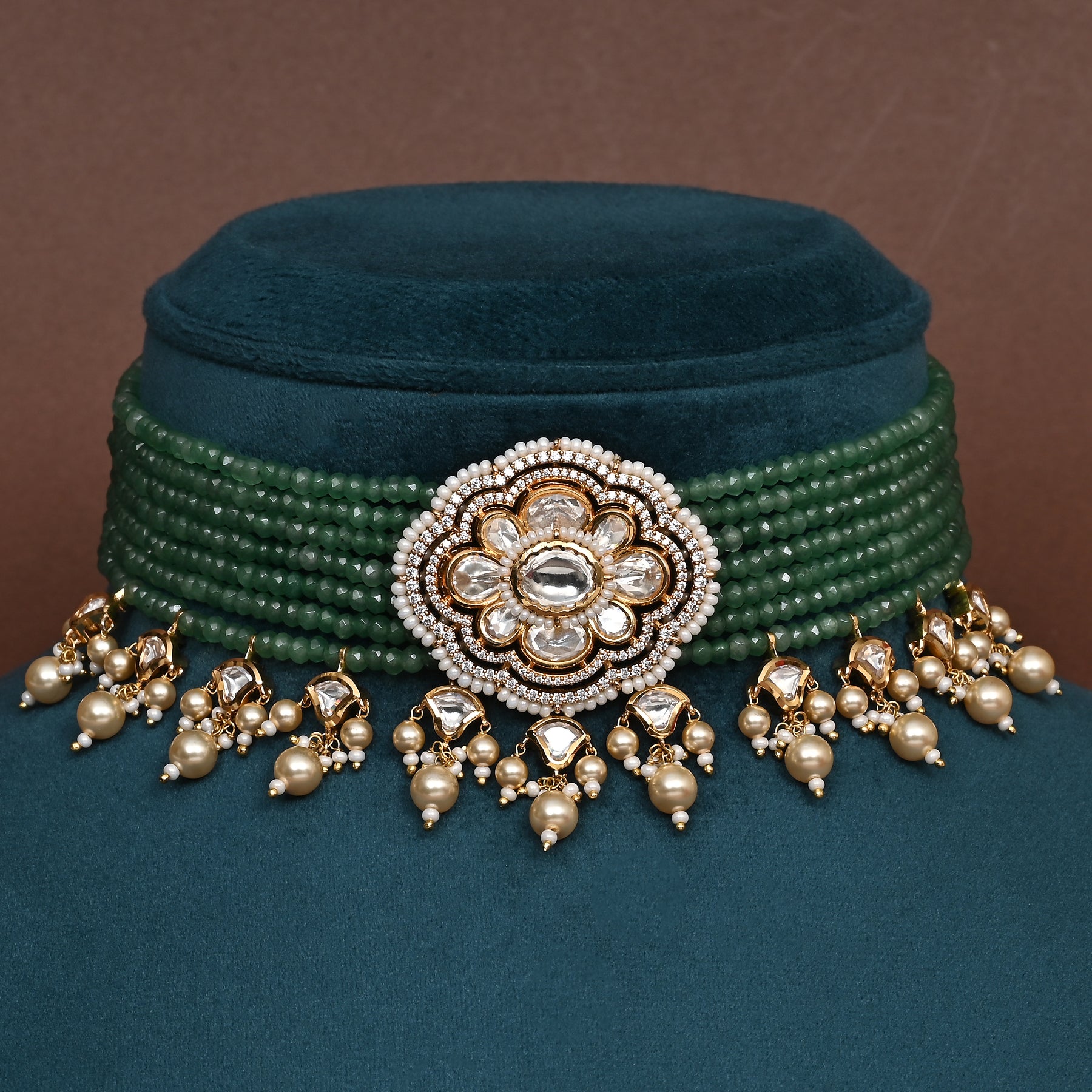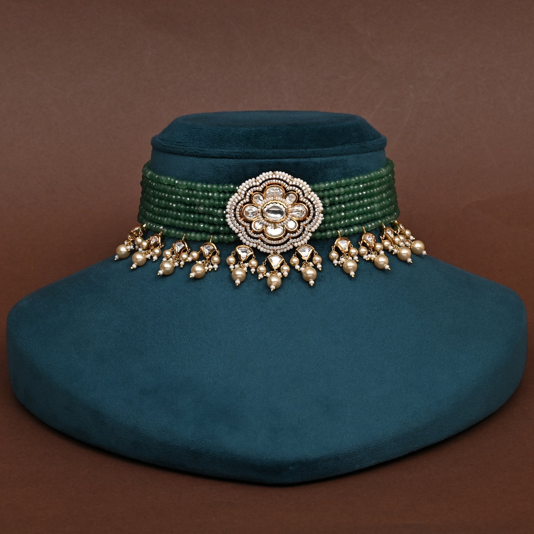 Elevate your elegance with this handcrafted Moissanite Choker Set, featuring dazzling real CZ and moissanite stones that closely mimic the brilliance of real diamonds. Each piece showcases a unique, one-of-a-kind design, expertly crafted to offer timeless sophistication and exceptional sparkle. Perfect for those who appreciate fine craftsmanship and a luxurious diamond-like appearance without compromise.