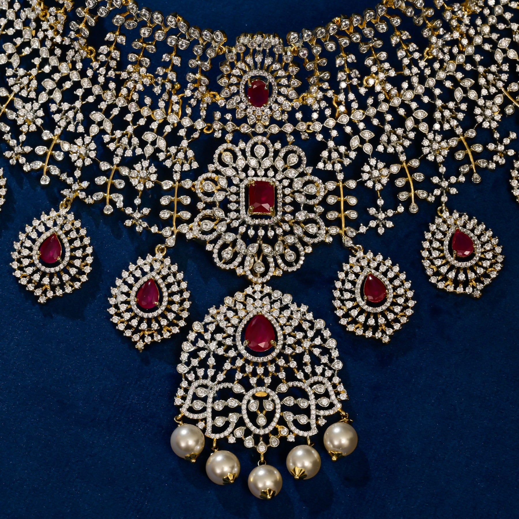 Elevate your neckline with this exquisite handcrafted silver choker, a true statement piece that combines timeless elegance with contemporary design. Crafted from premium 925 sterling silver, this choker features brilliant cubic zirconia stones paired with rich semi-precious ruby accents, creating a regal and sophisticated aesthetic. Each piece is meticulously handcrafted to ensure a one-of-a-kind design that reflects artisanal excellence. The royal appearance makes it perfect for special occasions, celebrations, or adding a touch of luxury to your everyday ensemble. The secure fit and refined craftsmanship ensure both comfort and durability. A stunning investment in timeless beauty that captures the essence of fine jewellery.