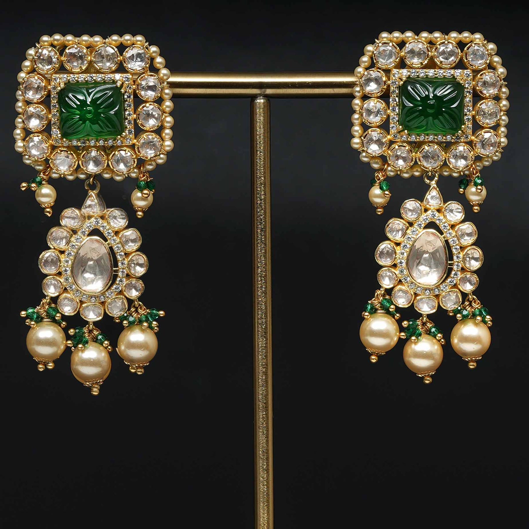 These expertly handcrafted Moissanite Earrings feature dazzling moissanite stones set in 92.5% silver with a luxurious gold-like finish. The unique design is enhanced by delicate pearls that dangle gracefully, creating a one-of-a-kind accessory that combines elegance with timeless craftsmanship. Perfect for those seeking refined sophistication and exceptional quality.