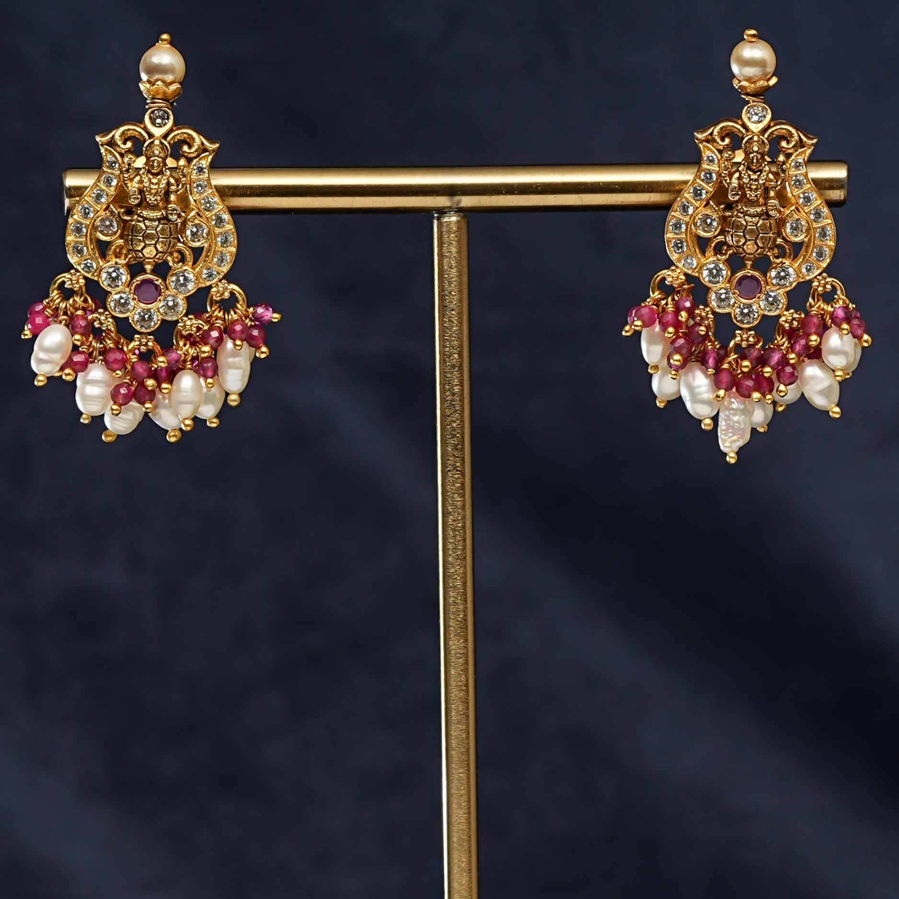 These Silver Temple Earrings are expertly crafted from 92.5% pure silver, showcasing a traditional Indian design with a rich gold-like finish. Their unique, one-of-a-kind style captures the essence of heritage jewelry, making them a distinguished addition to any collection. Perfect for those who appreciate authentic craftsmanship and timeless elegance.