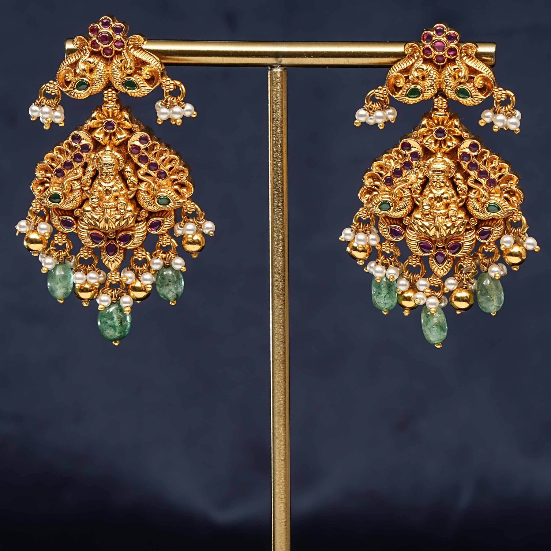 These Silver Temple Earrings are expertly crafted from 92.5% pure silver, embodying the rich heritage of Indian traditional jewelry. Designed to resemble the warm glow of gold, they offer a luxurious look without compromising on authenticity. Each pair features a unique, one-of-a-kind design that reflects timeless elegance and cultural artistry, making them a distinguished addition to any collection.