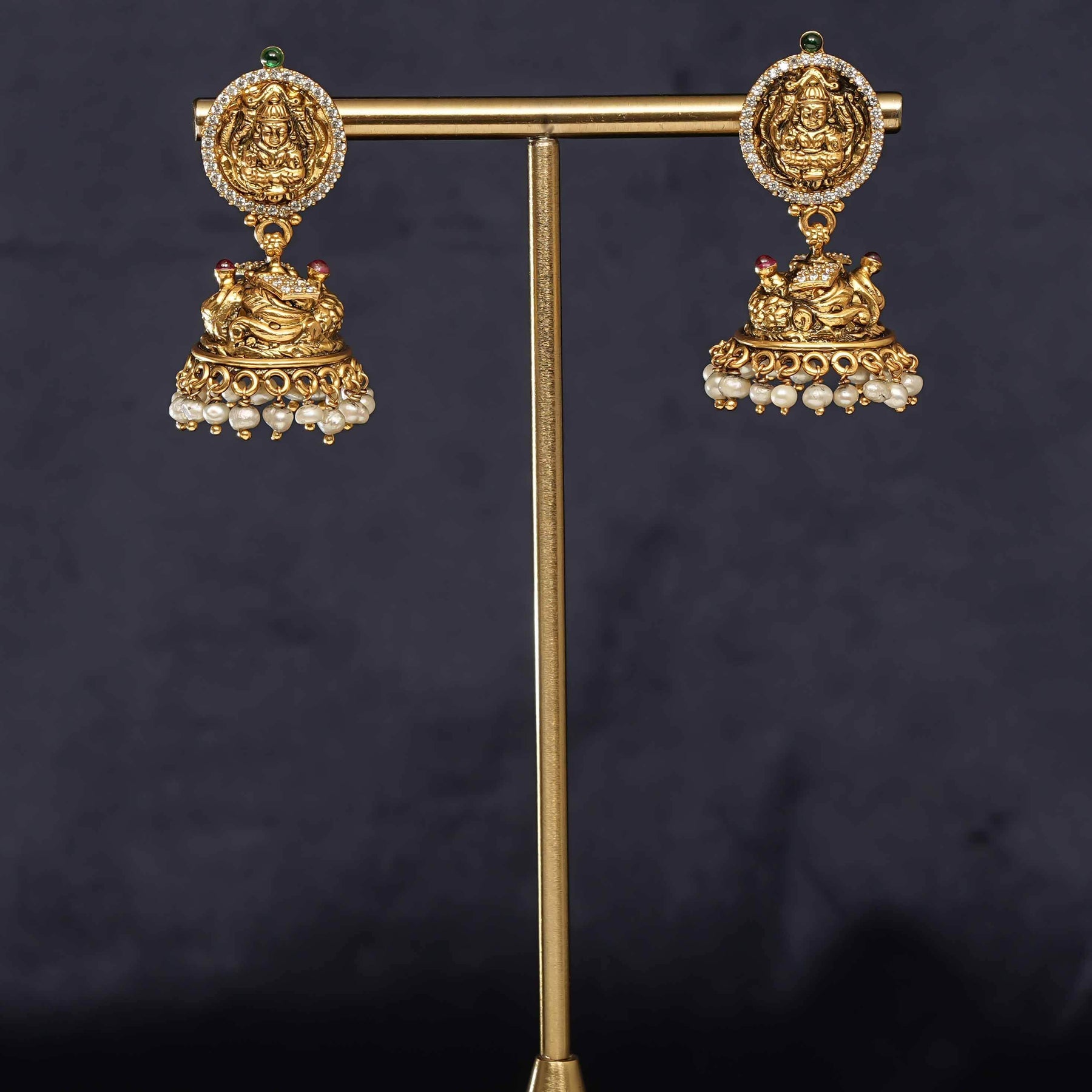 These Temple Jhumka Earrings are expertly crafted in 92.5% sterling silver, designed to emulate the rich gold appearance of traditional Indian jewelry. Featuring a unique, one-of-a-kind design, they capture the essence of classic temple motifs, making them a distinguished addition to any collection. Perfect for those who appreciate authentic craftsmanship and timeless elegance.