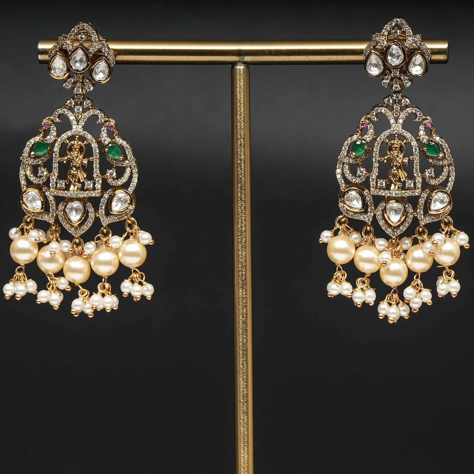 These Victorian CZ Earrings are expertly handcrafted from 92.5% sterling silver, featuring a gold-like finish that adds timeless elegance. Adorned with sparkling moissanite and genuine cubic zirconia stones, they offer exceptional brilliance and durability. Delicate pearls dangle gracefully, enhancing the unique, one-of-a-kind design. Perfect for those seeking a sophisticated accessory that combines classic charm with modern craftsmanship.