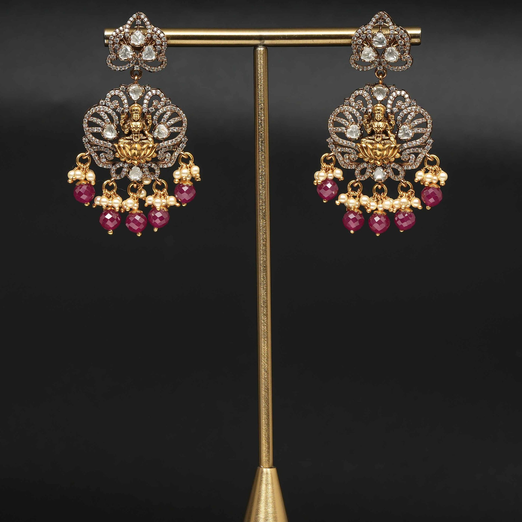These Victorian CZ Earrings are expertly handcrafted in 92.5% silver, featuring dazzling moissanite stones that mimic the brilliance of diamonds. Designed with a luxurious gold-like finish, they showcase delicate pearls dangling gracefully, creating a unique and timeless piece. This one-of-a-kind design combines classic elegance with exceptional craftsmanship, perfect for those seeking refined sophistication.