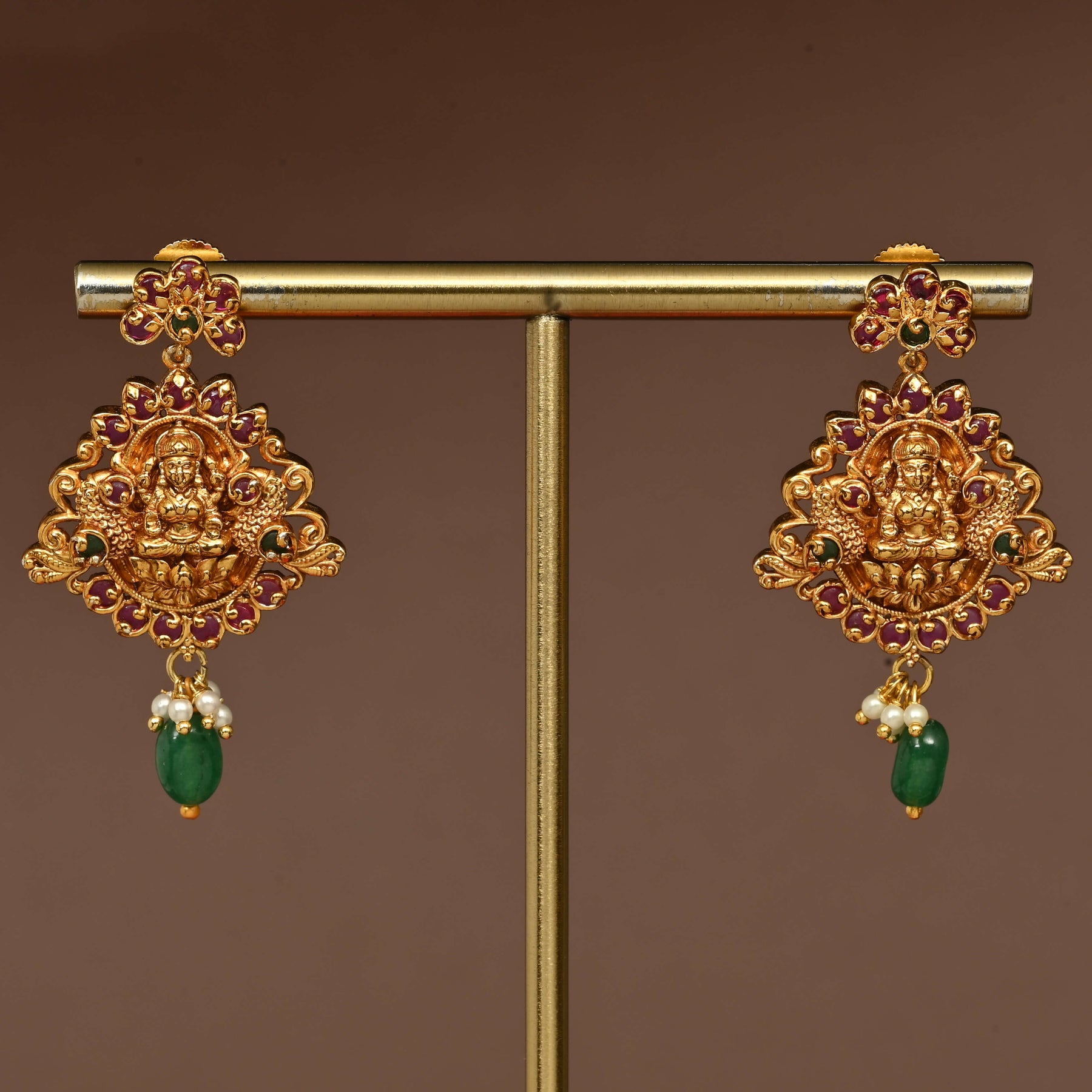 Embrace timeless elegance with this exquisite Temple Choker Set, a handcrafted masterpiece inspired by divine artistry. Featuring a radiant gold finish that captures the essence of traditional temple jewelry, this one-of-a-kind piece celebrates the grace of Goddess Lakshmi. Each detail is meticulously crafted by skilled artisans, blending spiritual significance with sophisticated design. Perfect for festive occasions, weddings, or adding a touch of cultural heritage to your everyday elegance. A treasured heirloom waiting to become part of your story.