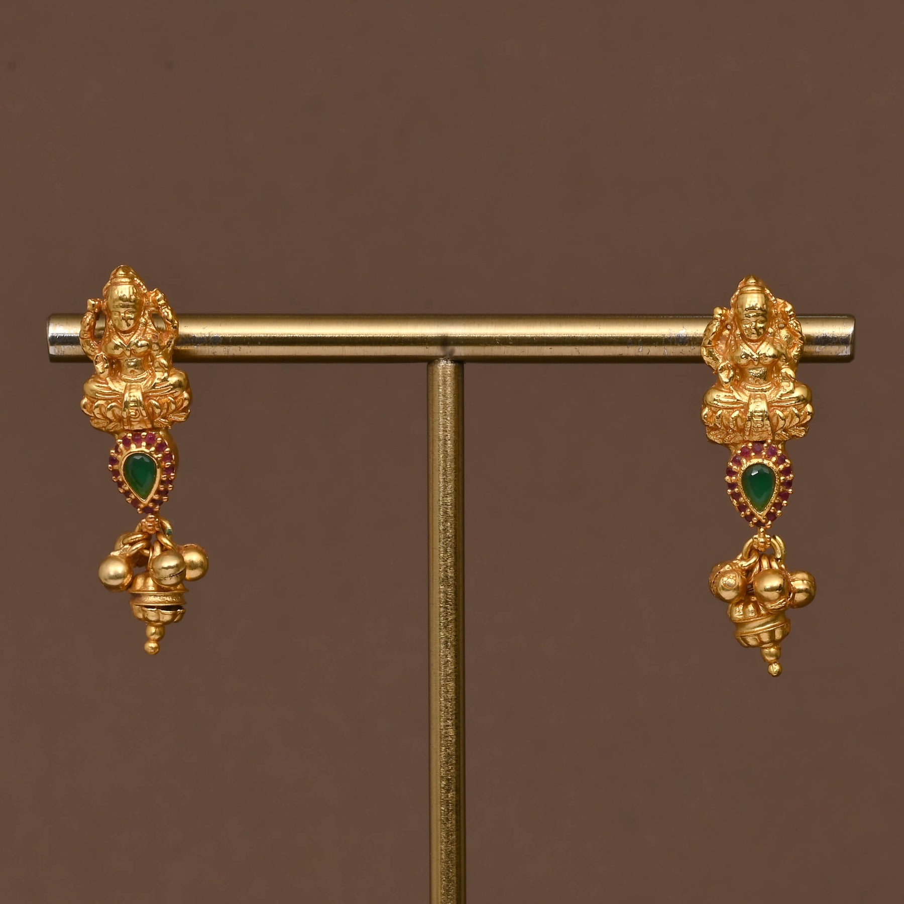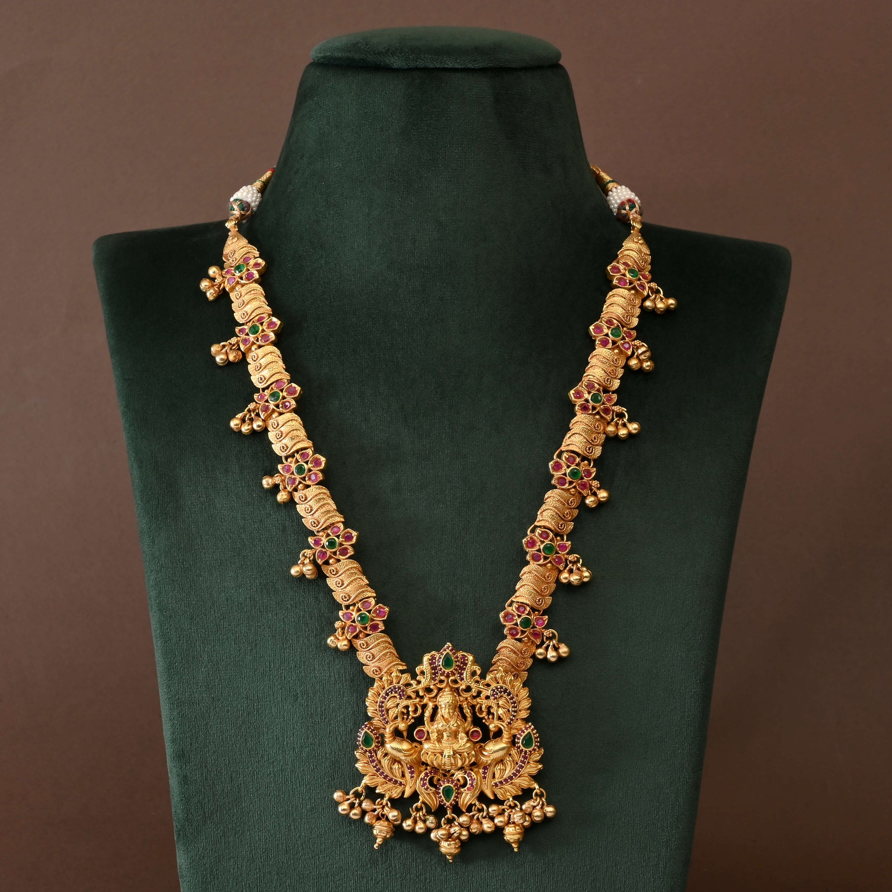 This Temple Long Necklace showcases a one-of-a-kind traditional design inspired by goddess Lakshmi, finished in a rich gold tone that mimics the look of real gold. Its intricate craftsmanship reflects cultural heritage, making it a distinguished piece for ceremonial occasions or elegant everyday wear. Perfect for those appreciating authentic temple jewelry aesthetics with timeless appeal.