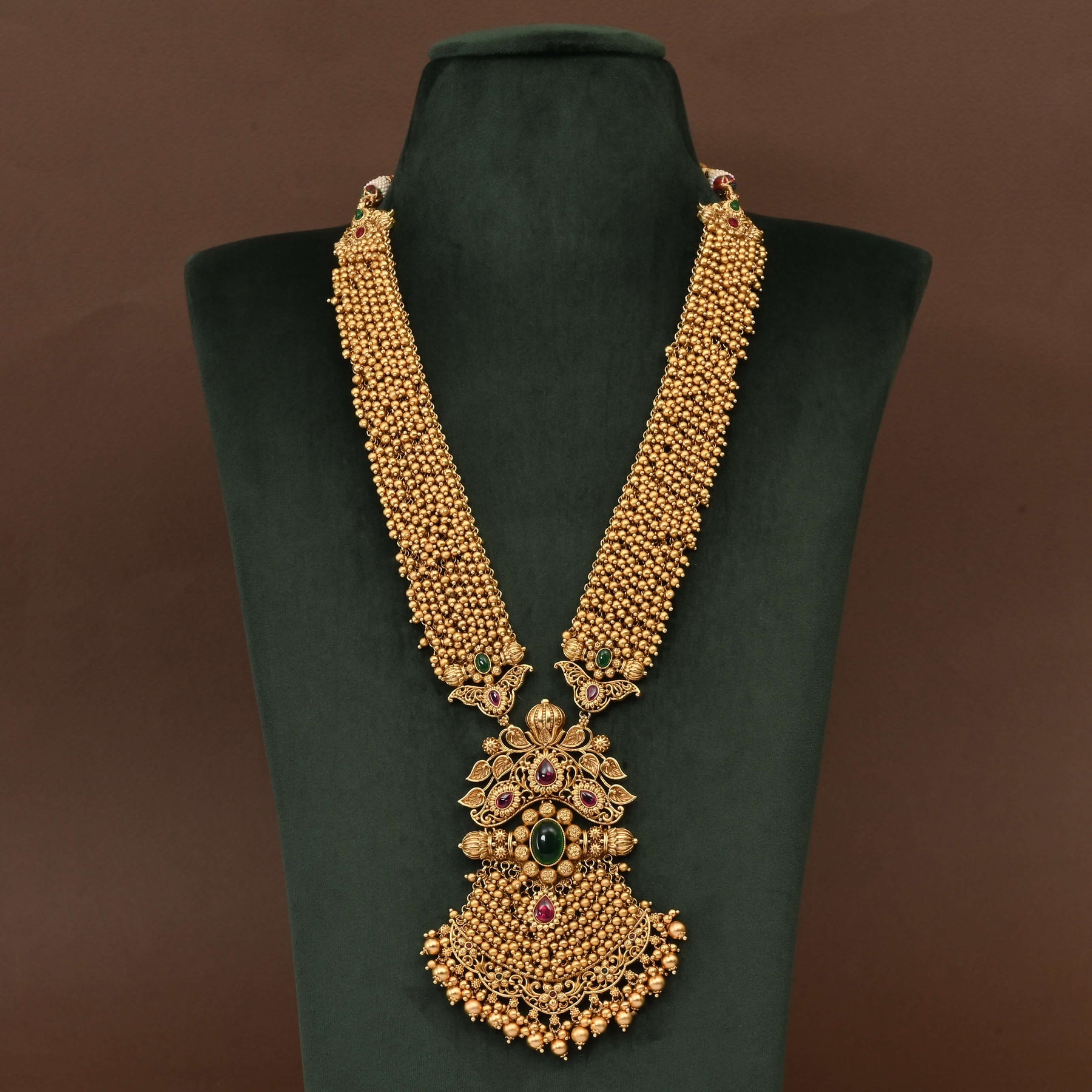 The Temple Necklace Set offers a handcrafted, exclusive design that captures the essence of traditional Indian jewelry. Finished in a rich gold tone, it closely resembles real gold, providing an authentic and elegant look. This set is perfect for those seeking timeless craftsmanship and cultural significance in their adornments.
