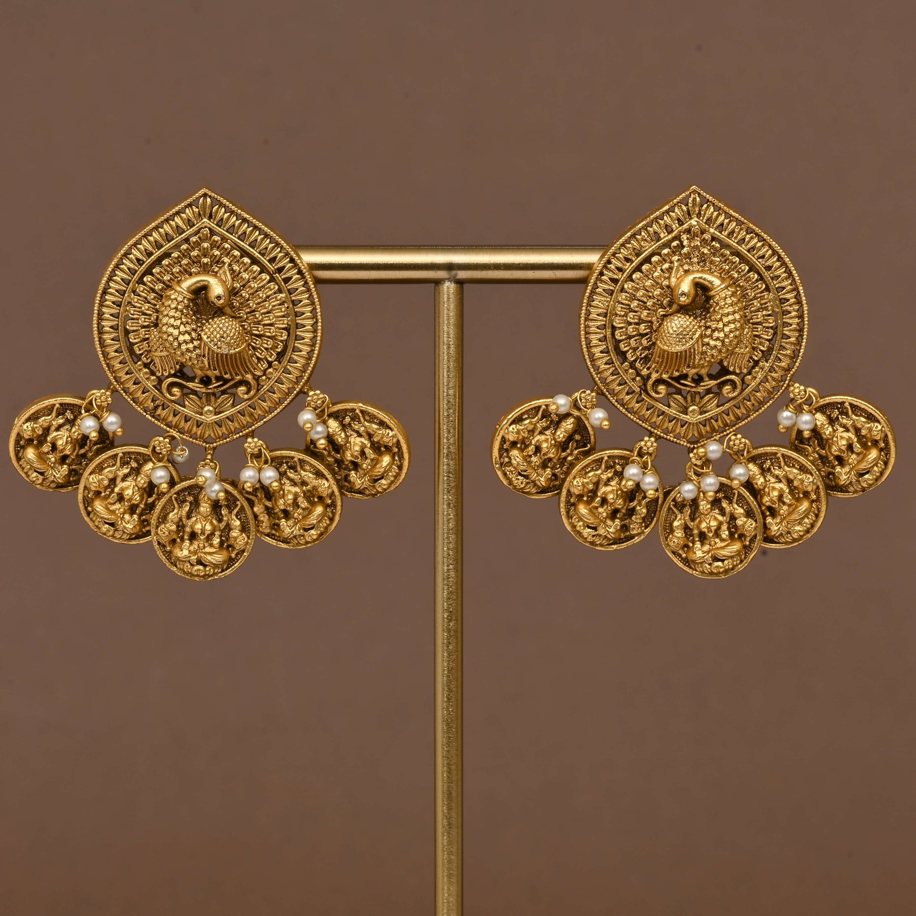 Experience the elegance of tradition with this Temple Necklace Set, designed to mirror the divine beauty of Goddess Lakshmi. Crafted with a gold finish that closely resembles real gold, it offers a luxurious and authentic look. Its unique, one-of-a-kind design captures the essence of heritage craftsmanship, making it a distinguished addition to any jewelry collection. Perfect for special occasions, this set seamlessly blends cultural significance with timeless style.